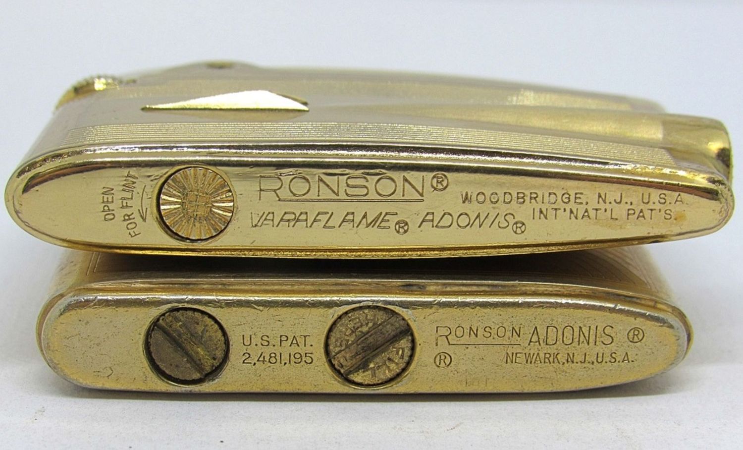 GOLD TONED PAIR OF “ADONIS” LIGHTERS! PRE OWNED AND UNTESTED. ONE IS A VARAFLAME ADONIS LIGHTER.