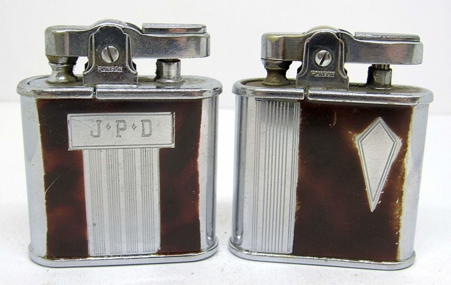 NICE PAIR OF SILVER AND BROWN VINTAGE LIGHTERS. BOTH UNTESTED AND PRE OWNED.