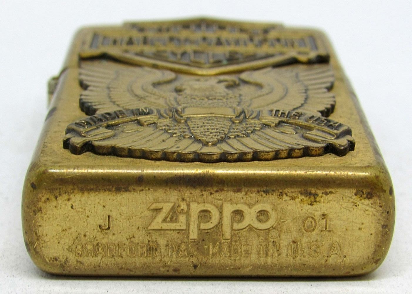 SOLID BRASS TONED LIGHTER, UNTESTED. EAGLE EMBLEM IS IN NICE CONDITION