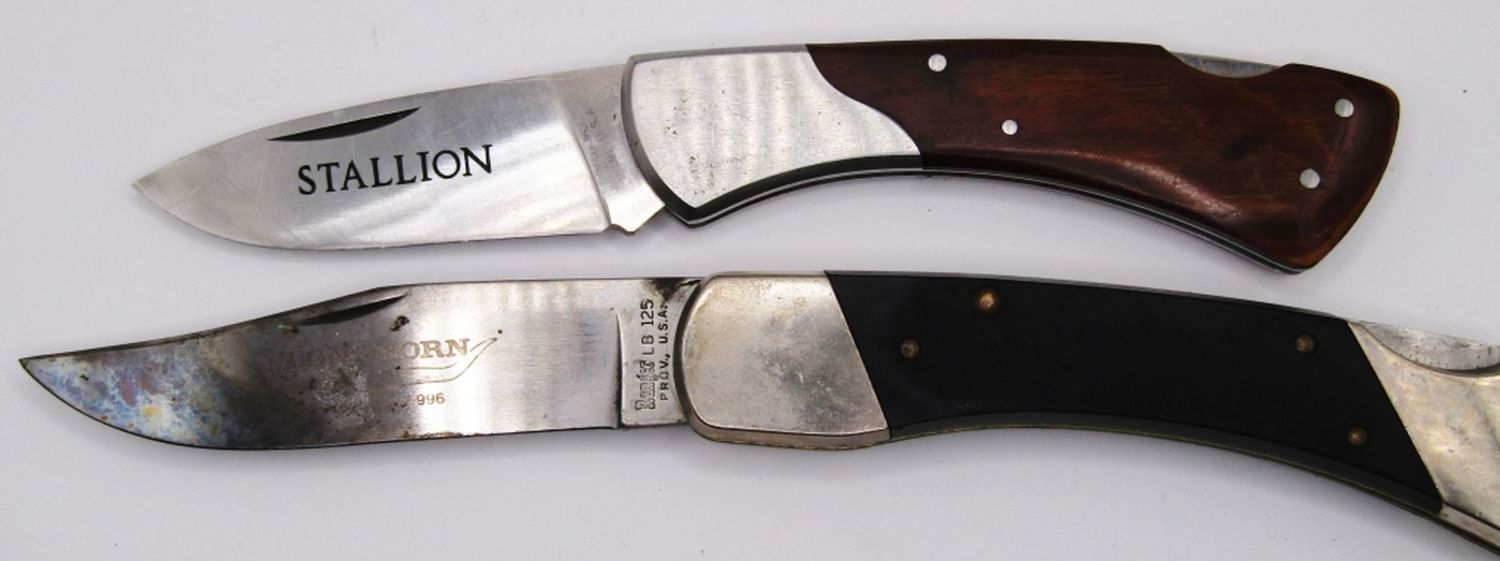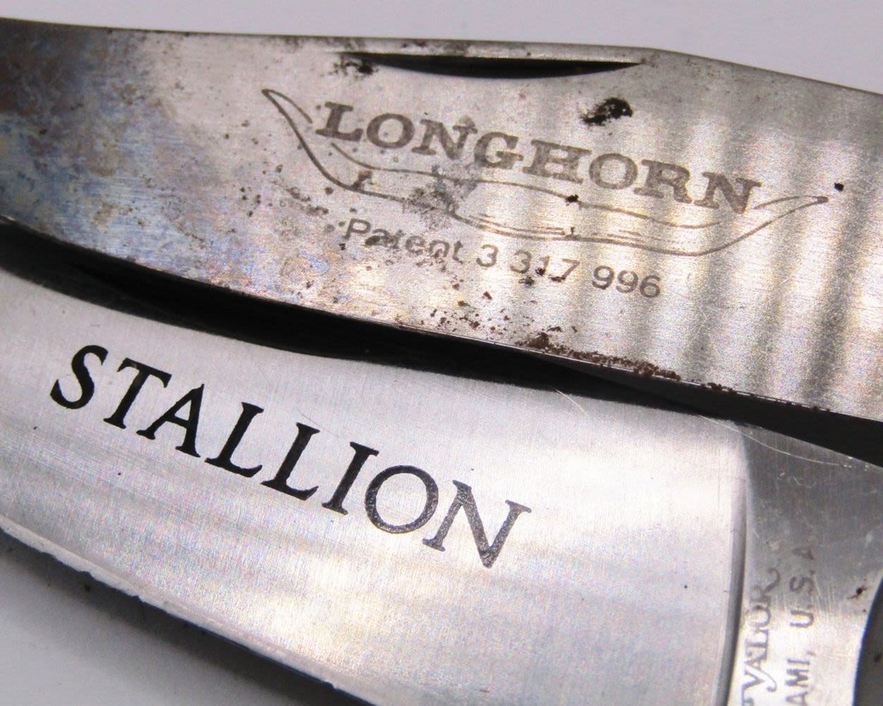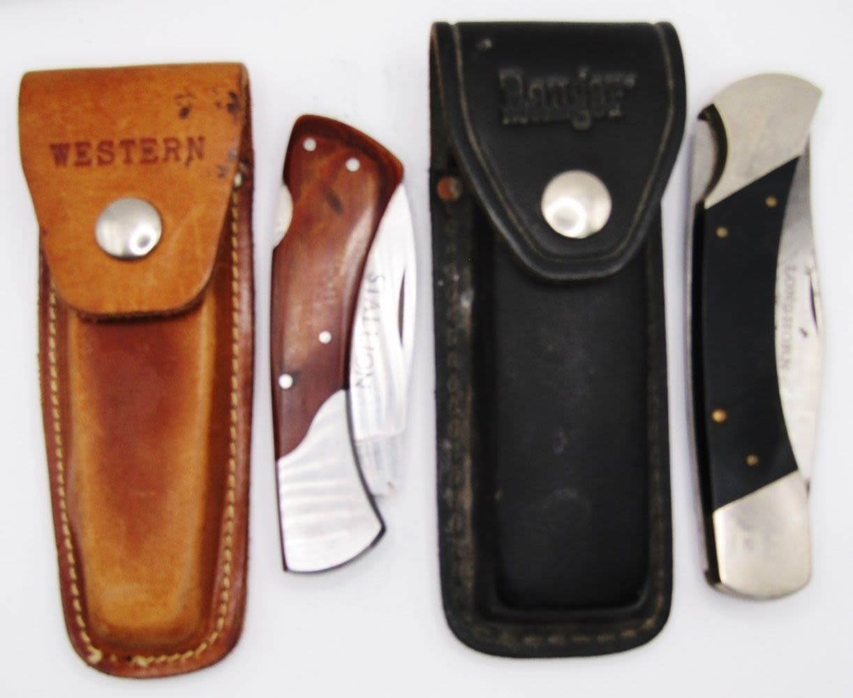 Vintage Ranger Longhorn Hunter LB 125 Lockback Pocket Knife in Ranger Sheath; Vintage Valor Lockback Stallion PocketKnife in WESTERN Sheath!