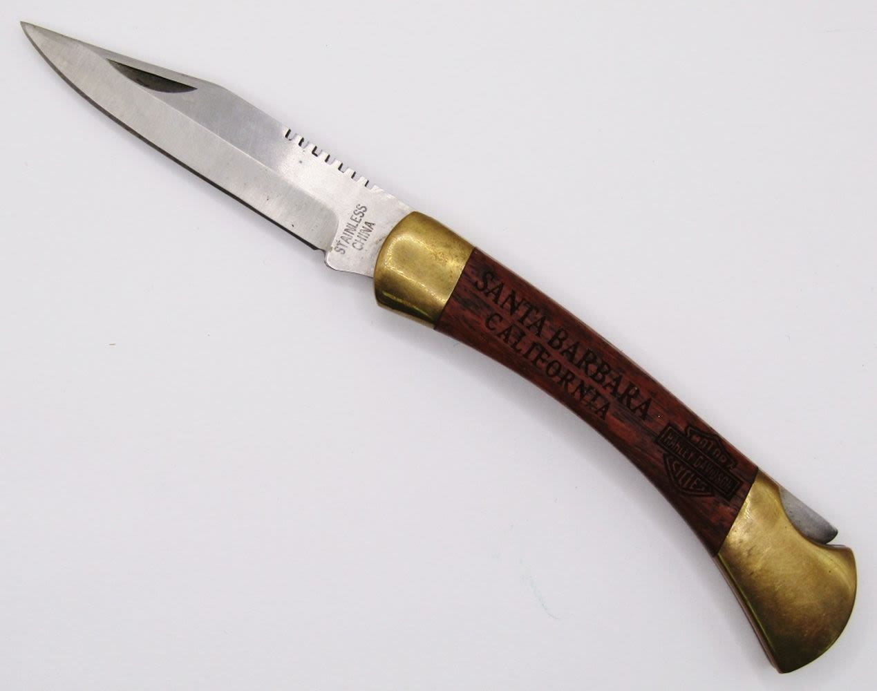 Wood Handle “Santa Barbara California” Single Blade Marked Stainless! Good Condition – No Wobble/Good Snap!