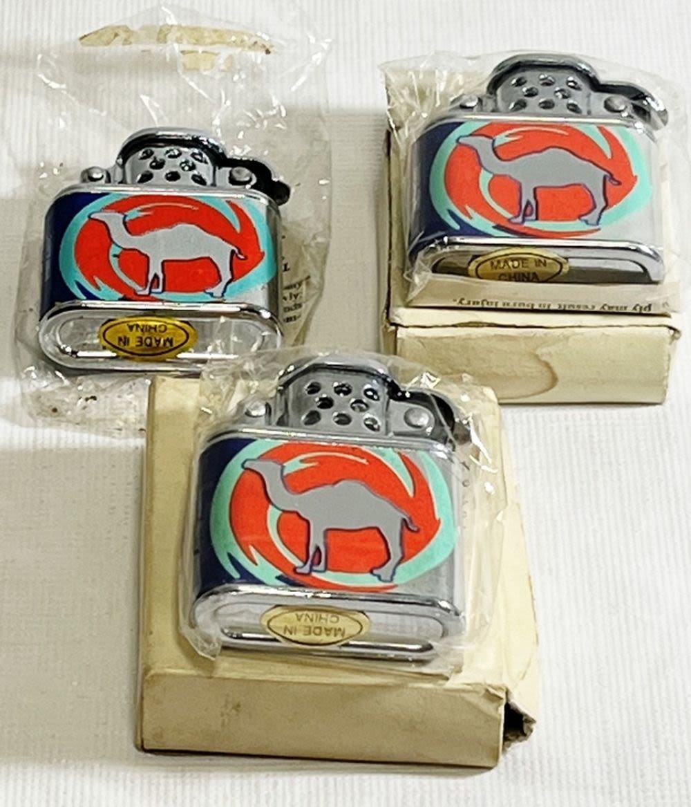 (3) 1997 Mini Camel Advertising Lighters, Marked 1997 RJRTC. (2) In Box (1) In wrapper with papers.