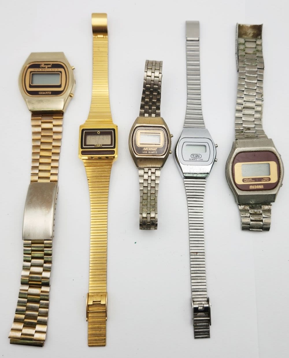 MEDANA-ROYAL QUARTZ-TOTAJ QUARTZ LCD-NELSONIC LCD QUARTZ-TIMEX QUARTZ-ALL WATCHES UNTESTED/PARTS/REPAIR
