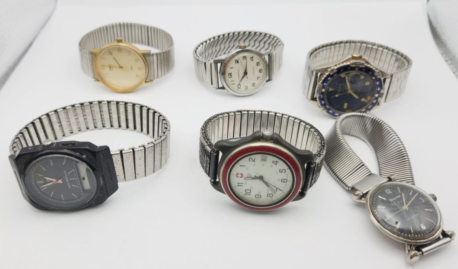 MCGREGOR WR CALENDAR-BULOVA 23 JEWELS WATERPROOF-SWISS ARMY CALENDAR-CARAVELLE WATERPROOF-CASIO QUARTZ 50M WR DIGITAL-ALL WATCHES UNTESTED