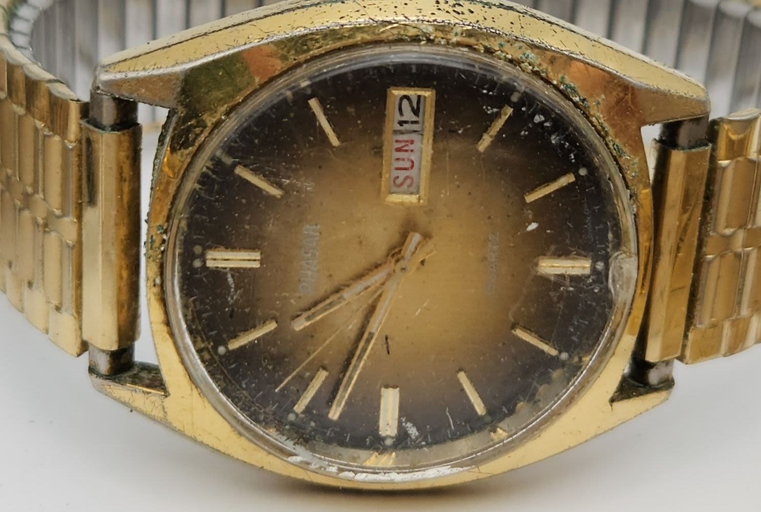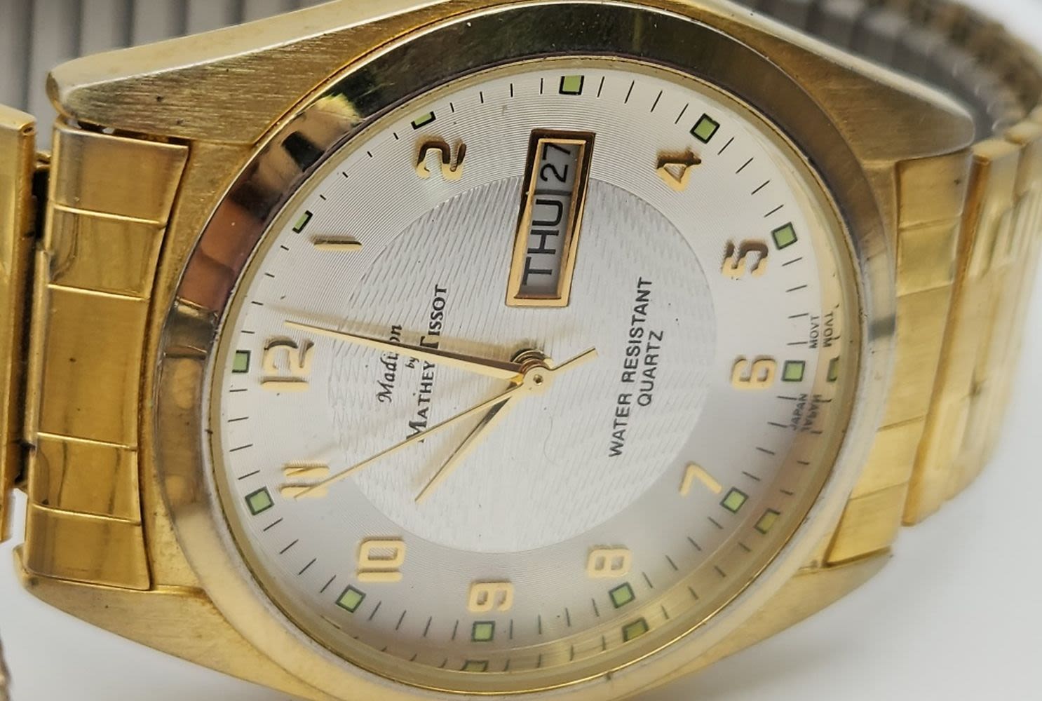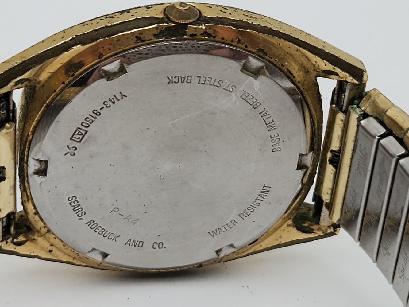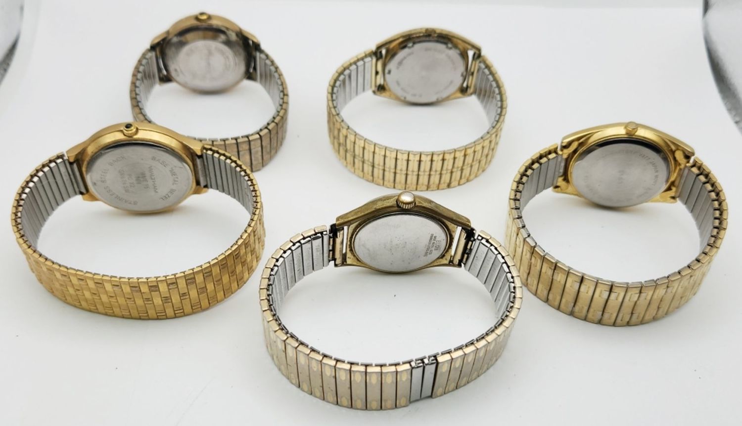 STRETCHY BANDS: WALTHAM QUARTZ CALENDAR-PHASAR DAY DATE QUARTZ-MADISON WR QUARTZ DAY DATE-TIMEX SELF WIND CALENDAR-ELGIN DAY DATE-ALL WATCHES UNTESTED