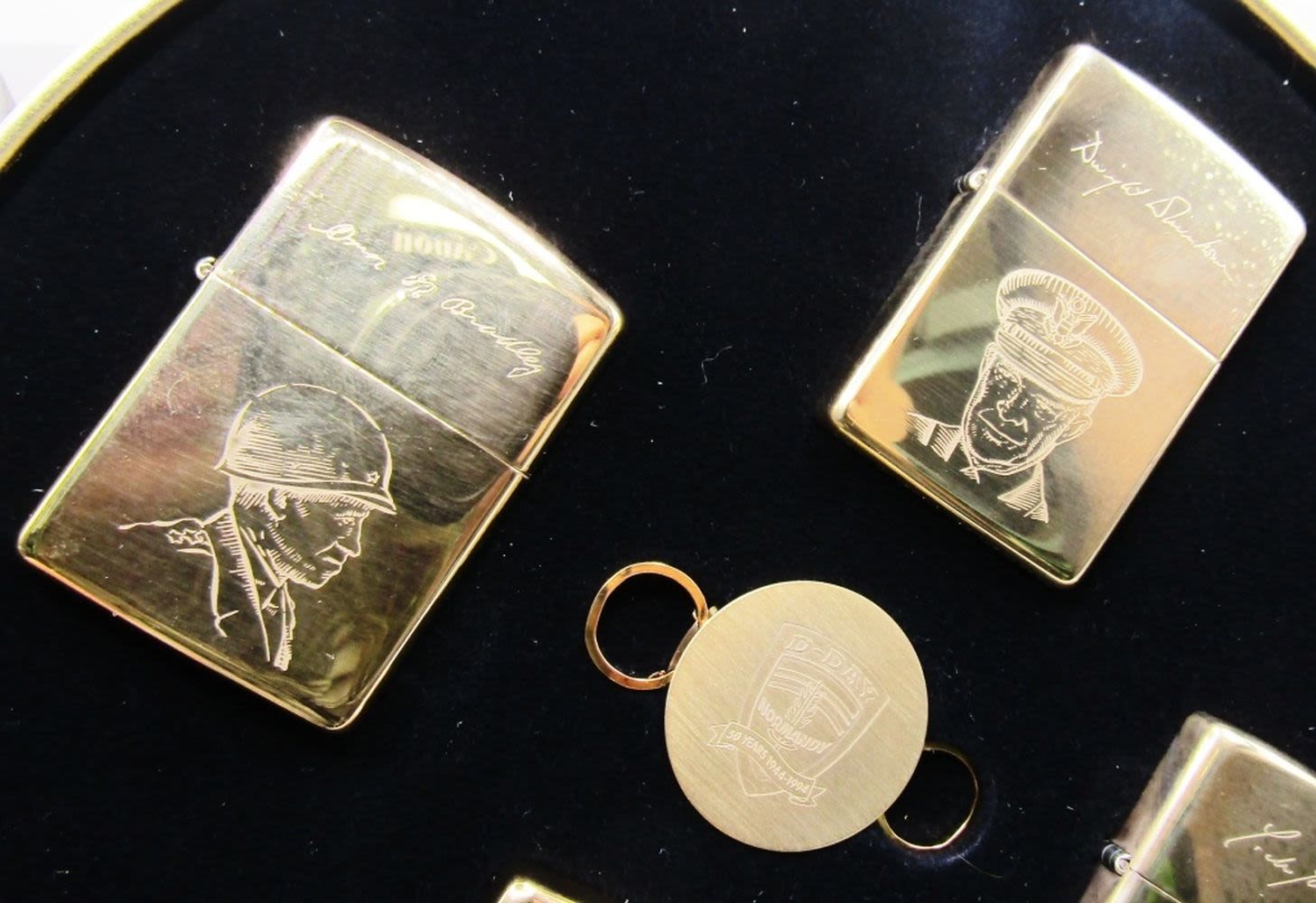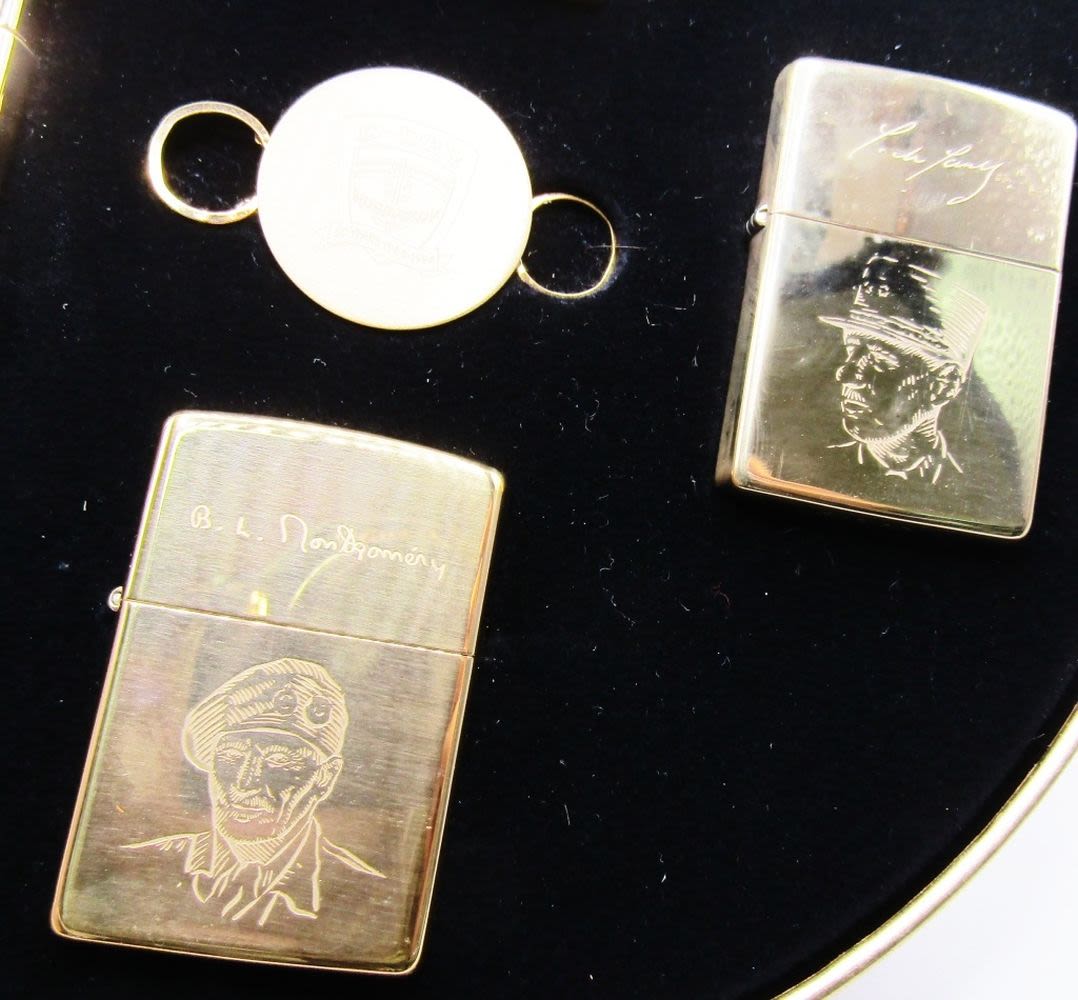 NEW IN COLLECTIBLE TIN! NORMANDY LIGHTER SET ALLIED HERO 1944-1994; UNSTRUCK! DWIGHT D EISENHOWER, OMAR BRADLEY, CHARLES DEGAULLE, B. L. MONTGOMERY!