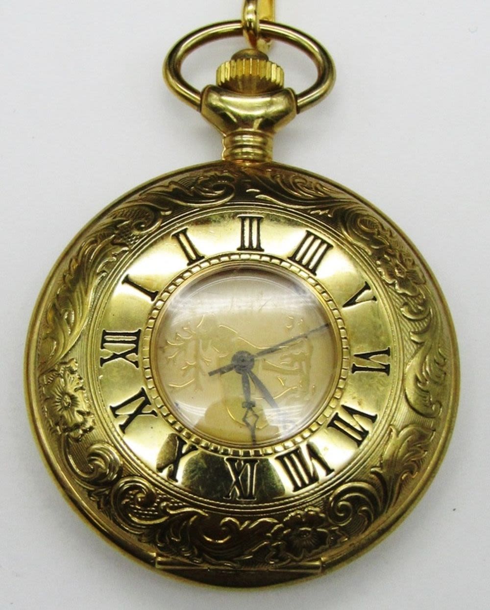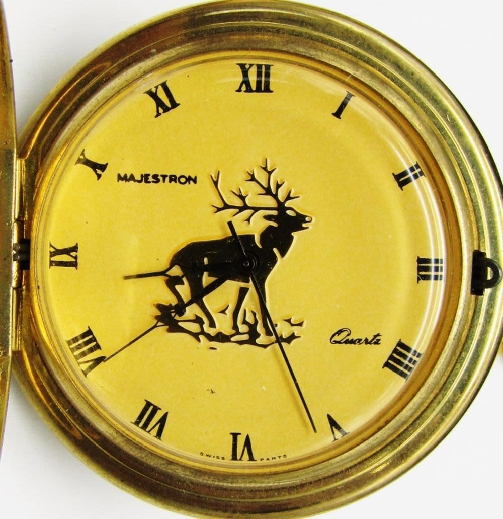 PRETTY GOLD TONED HUNTING CASES – RUNNING CONDITION (1) QUARTZ with ELK FACE – NEEDS BATTERY