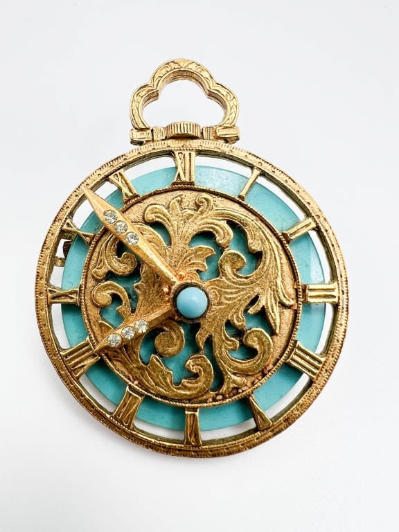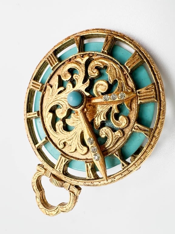 FLOREZA SIGNED CLOCK BROOCH