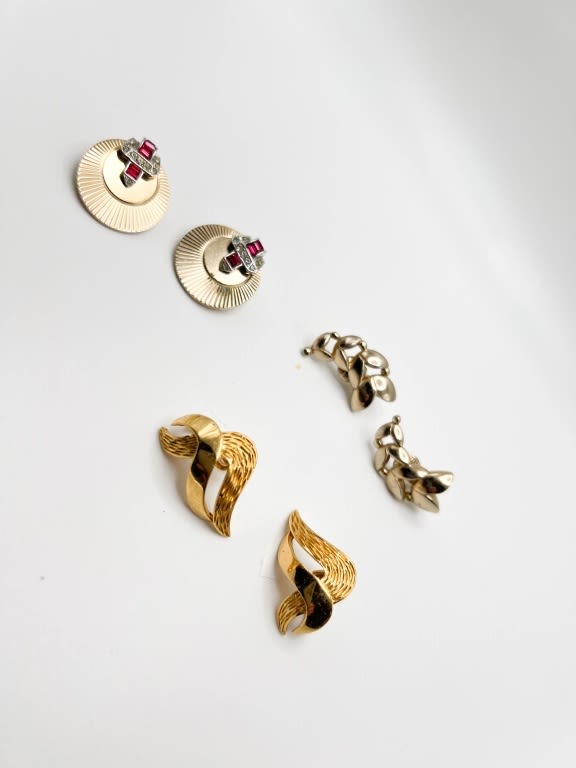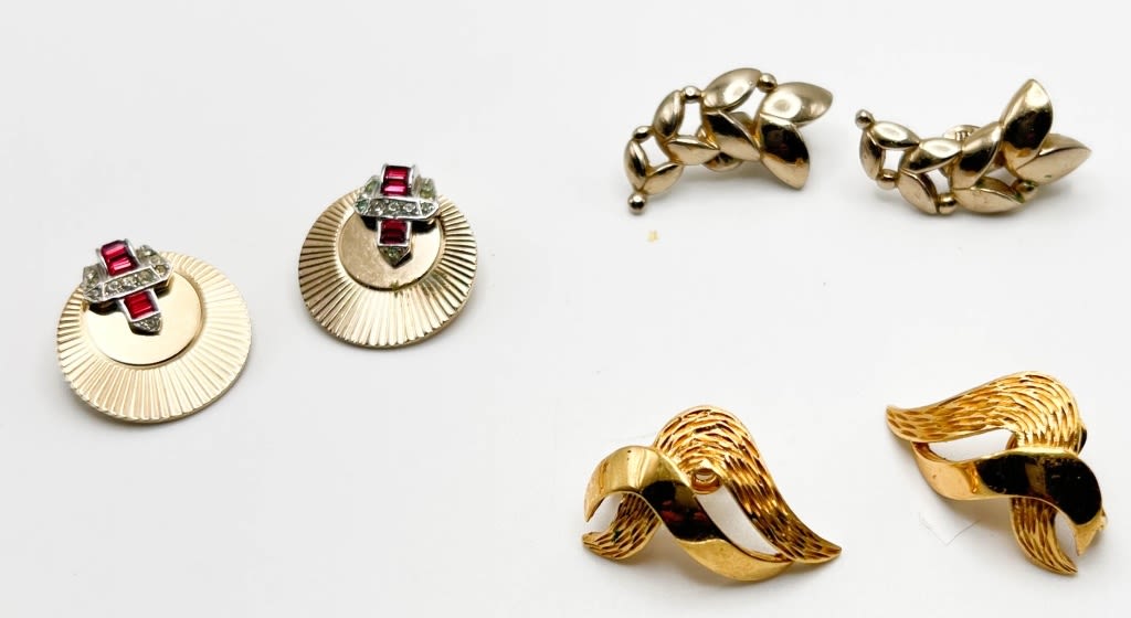 BOUCHER RED STONE , TRIFARI CROWN GOLD TONE , MONET EARRINGS