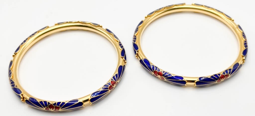 2 CLOISSONE MATCHING BRACELETES IN RED AND BLUE TONES