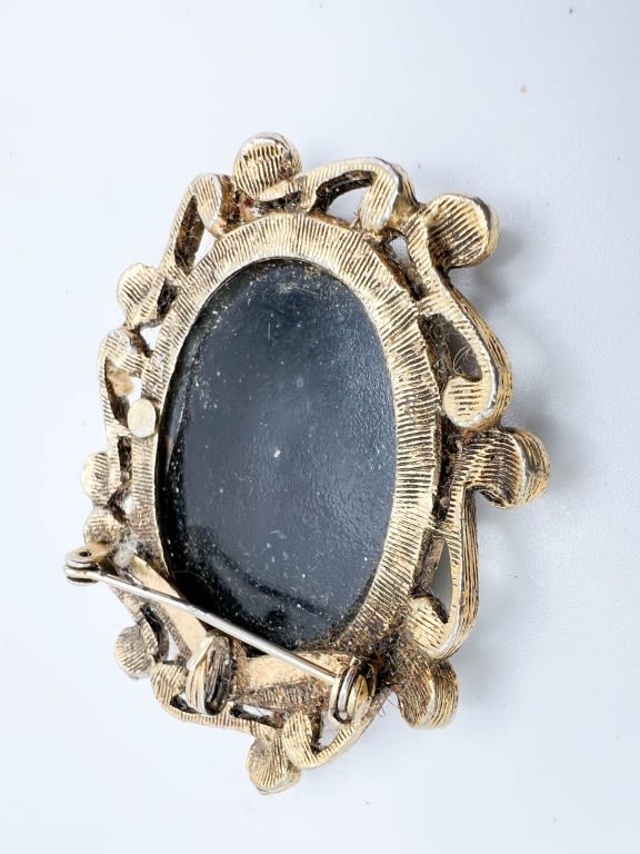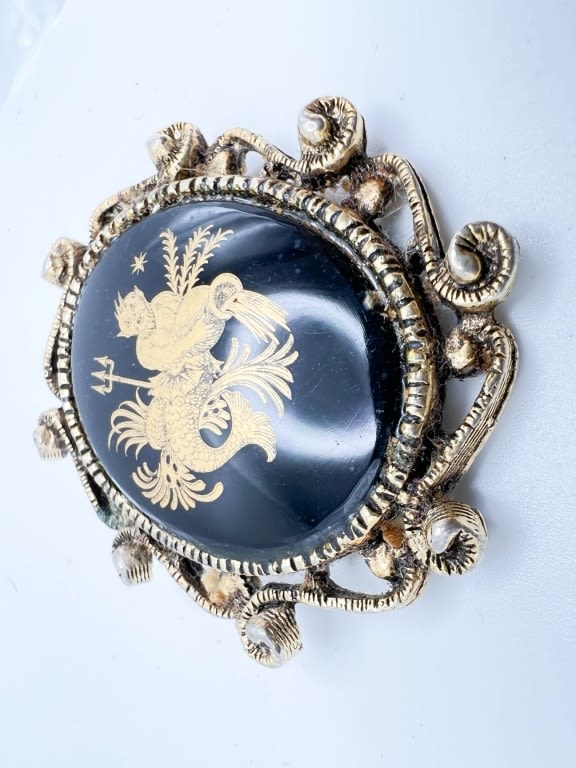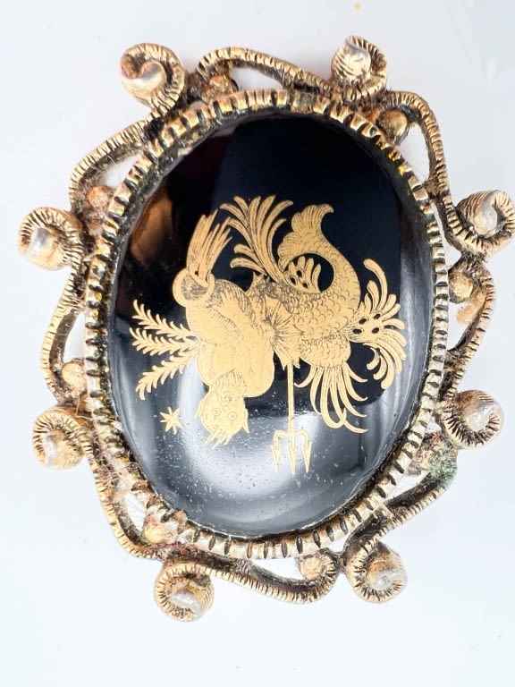 VINTAGE BROOCH PENDANT, DAMASCENE STYLE LOOK