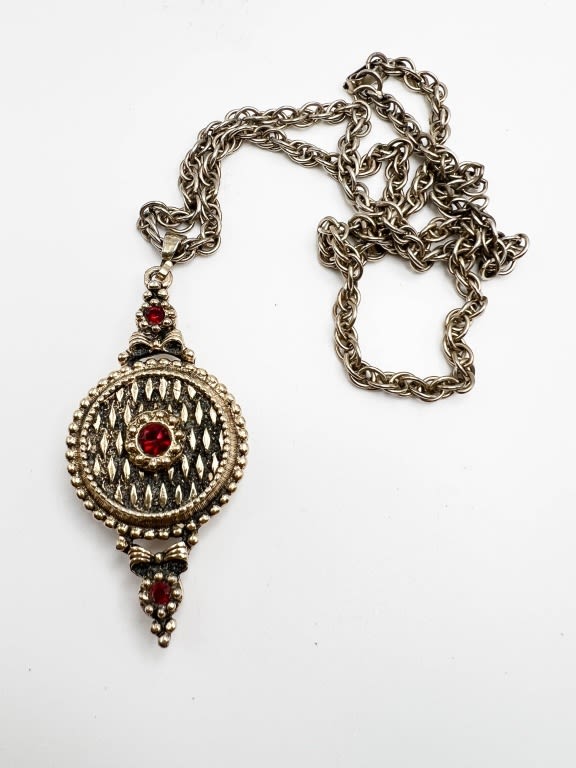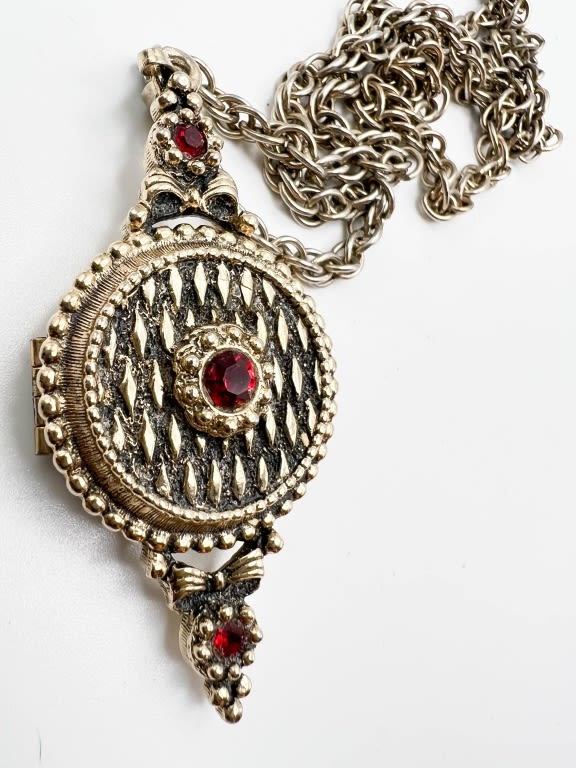 RED STONE LOCKET NECKLACE