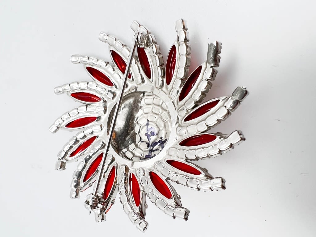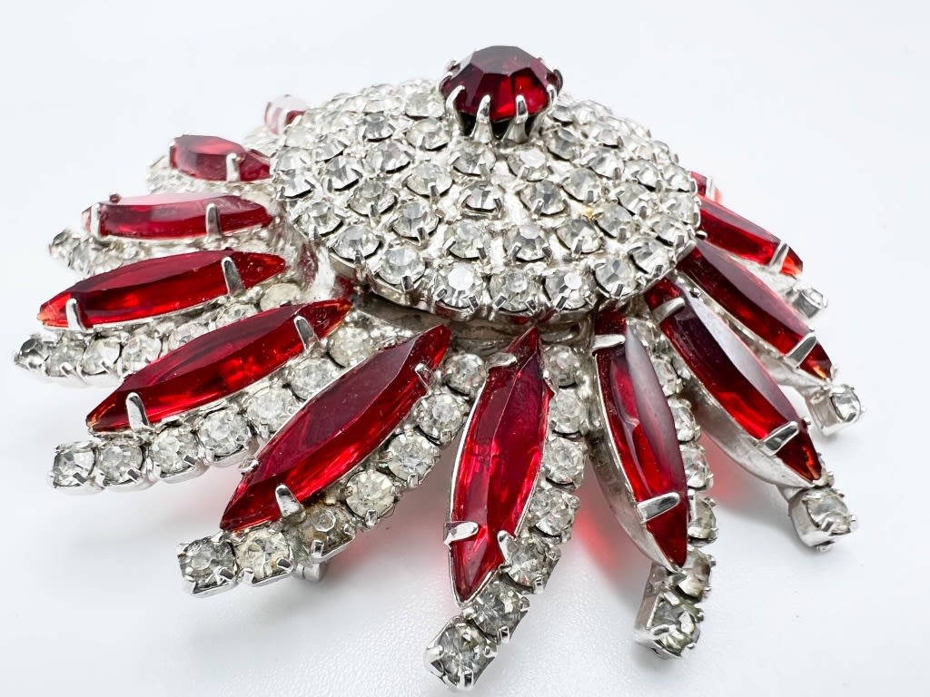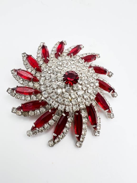 AMAZING RED AND CLEAR STONE BROOCH, LIKE NEW