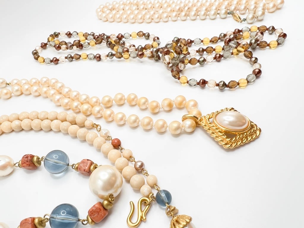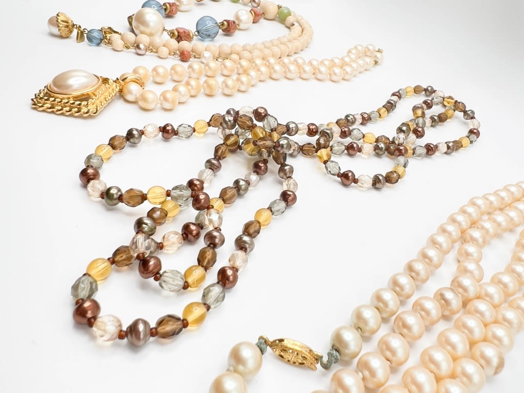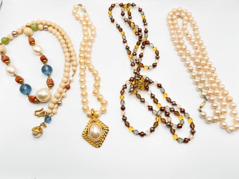 4 VINTAGE NECKLACES, PRETTY GLASS STONES , PENDANT AND MORE