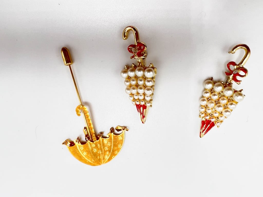 UMBRELLA BROOCHES, LOT OF 3 VINTAGE