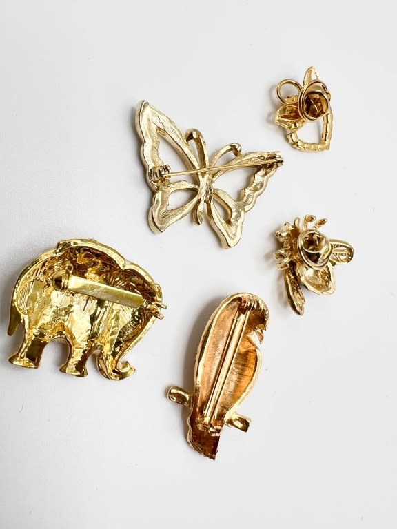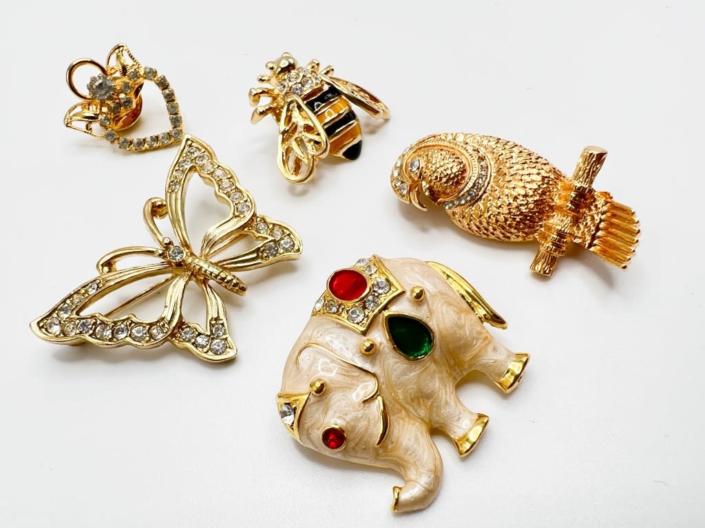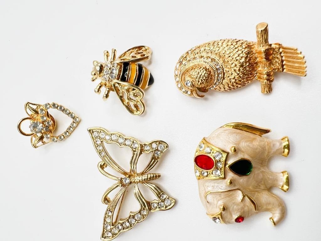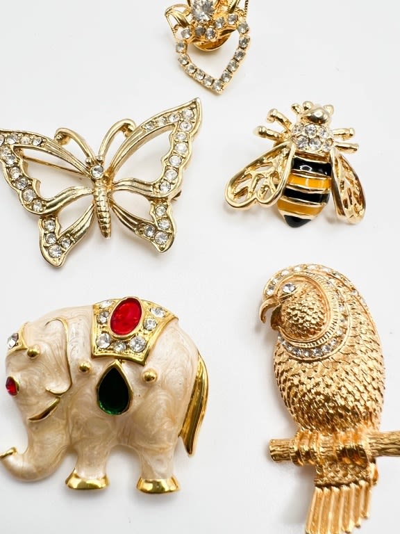 ADORABLE ELEPHANT BROOCH , BUTTERFLY, PARROT, BEE + BROOCHES