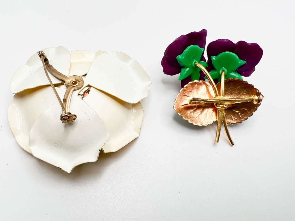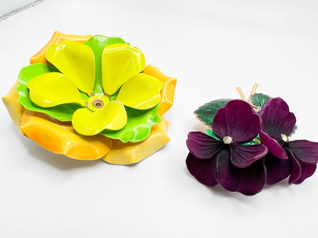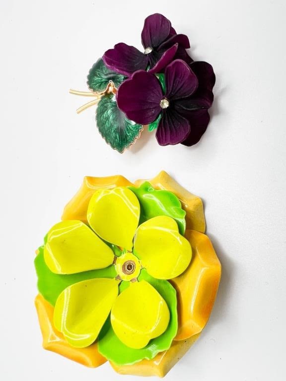 TWO BEAUTIFUL FLORAL PINS- BRIGHT COLORS