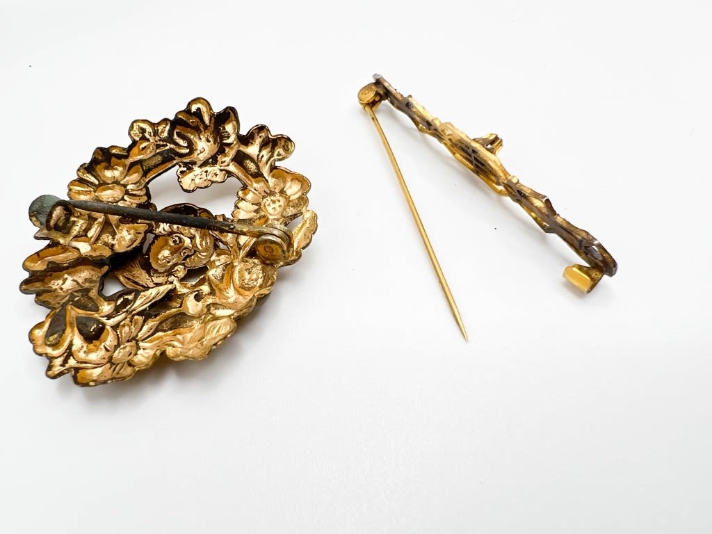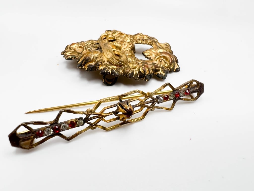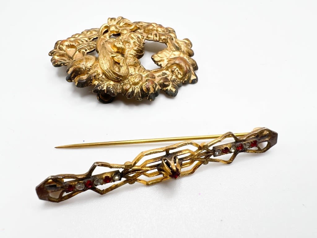 ANTIQUE? BROOCHES WITH C CLASPS, STONES