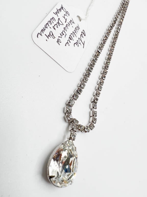AMAZING STONE NECKLACE WITH CLEAR LARGE DROP PENDANT