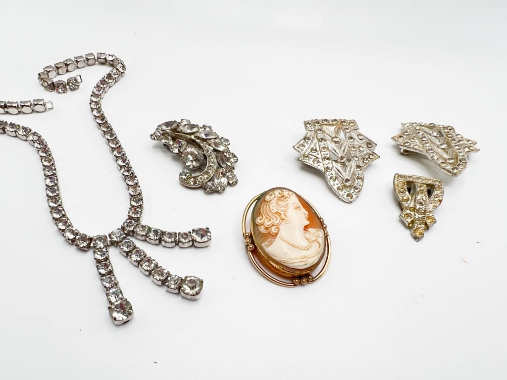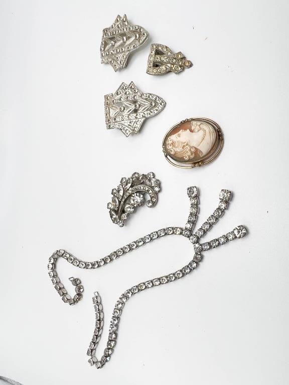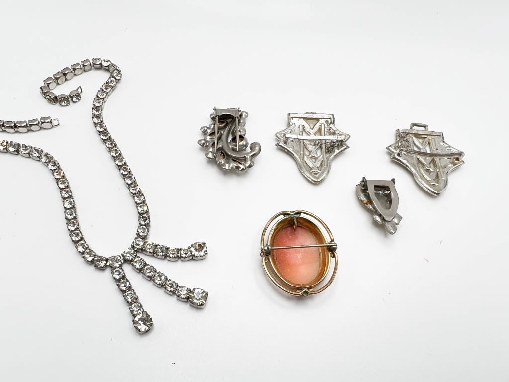 VINTAGE CLIP LOT AND BROOCH