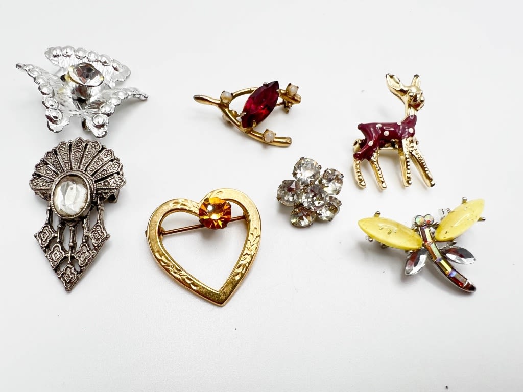 VINTAGE BROOCH LOT DRAGONFLY HEART DDER AND MORE