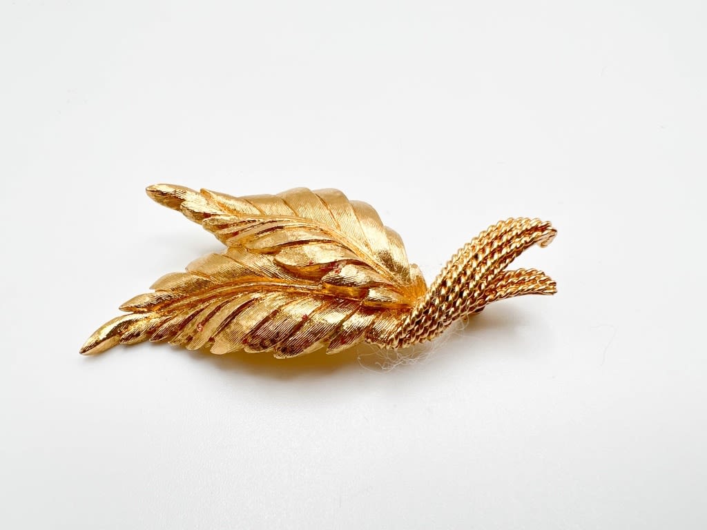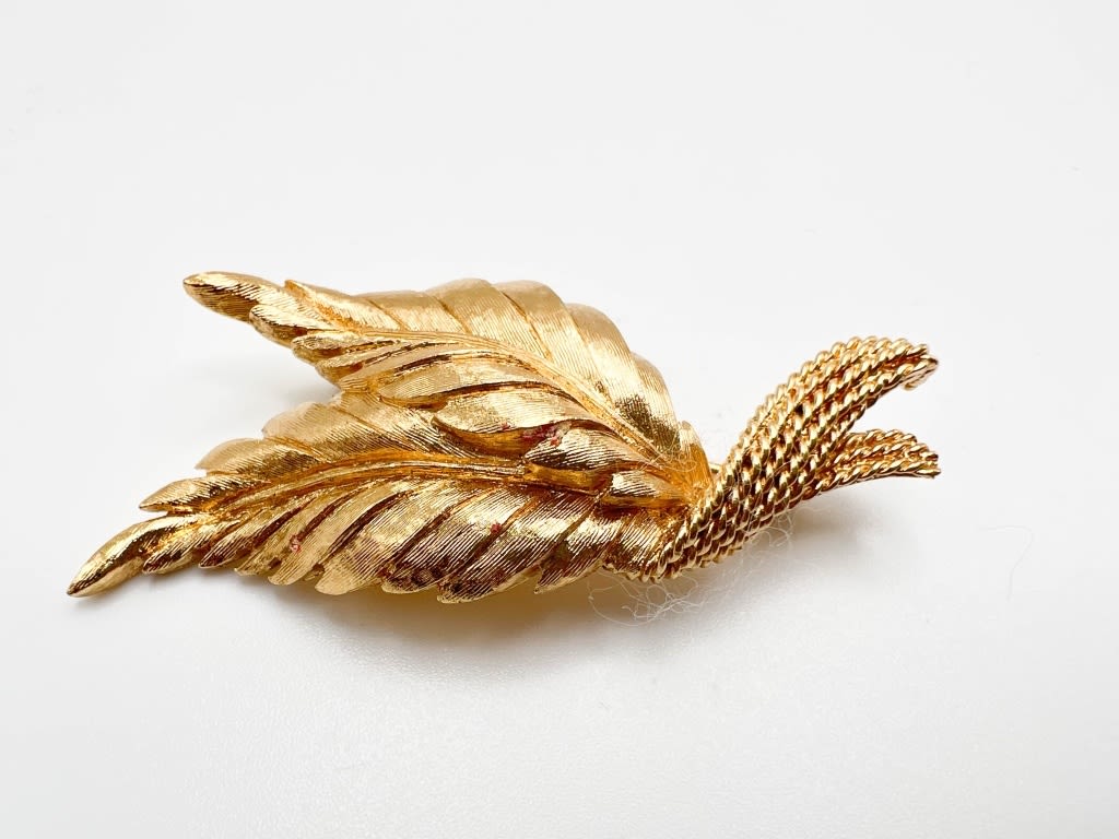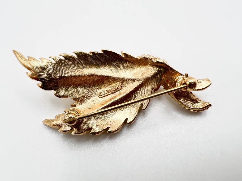 MONET SIGNED LEAF BROOCH GOLD TONE