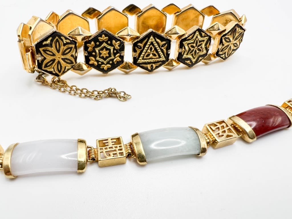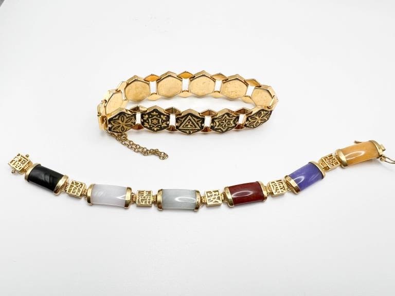 DAMASCENE BRACLET AND OTHER ASIAN COLOR STONE BRACELET