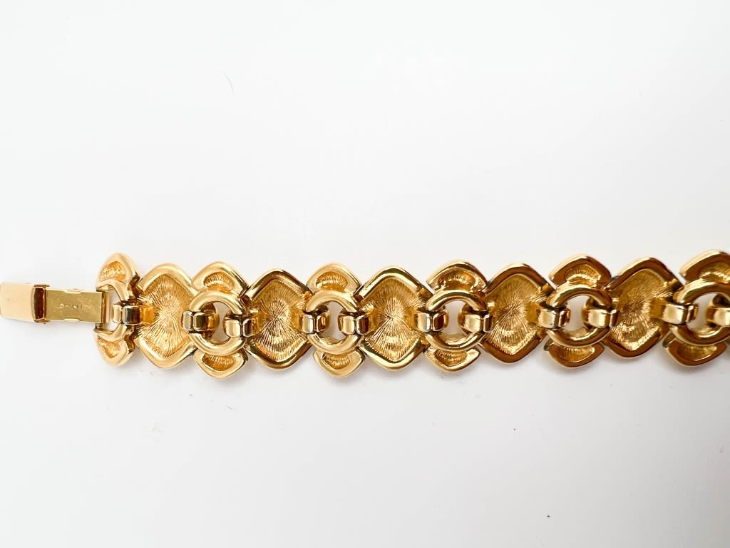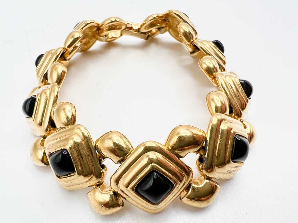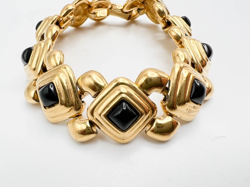 MONET SIGNED BLACK STONE ON GOLD TONE BRACELET