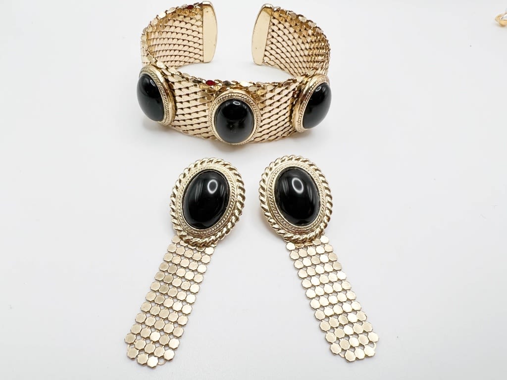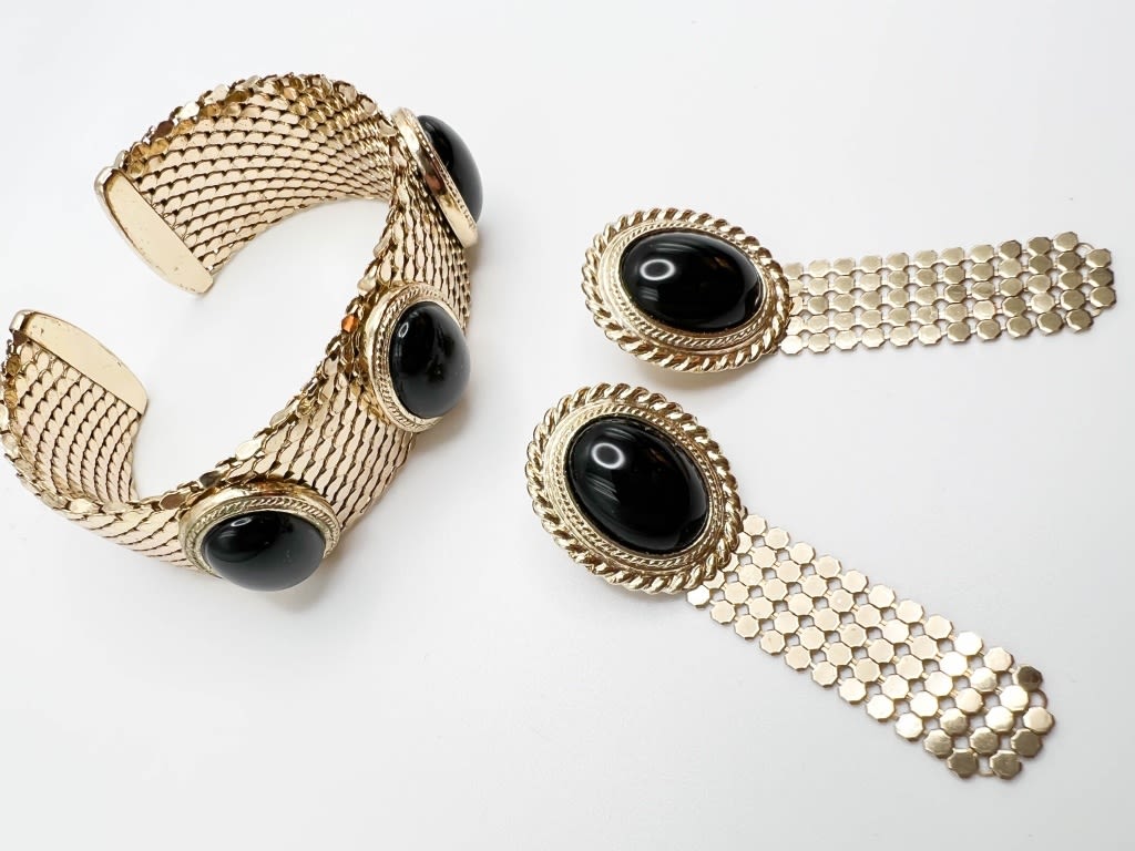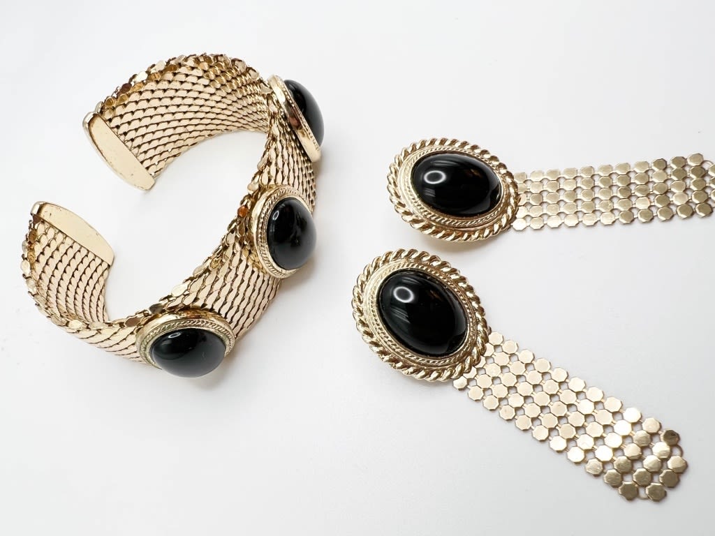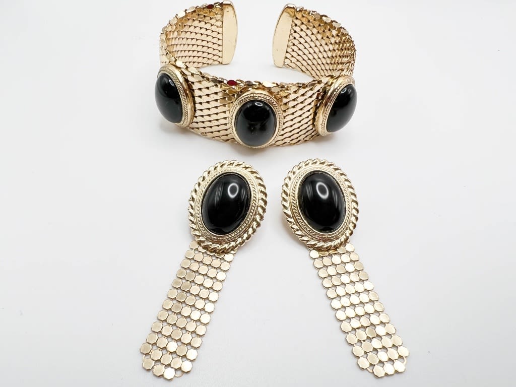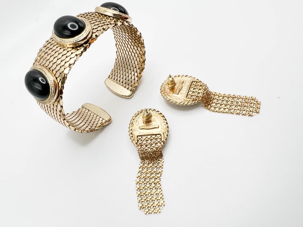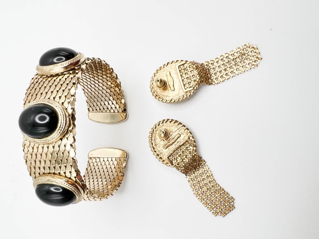 WHITING DAVIS FOIL MESH BRACELET AND EARRINGS MATCHING STONE SET , AMAZING