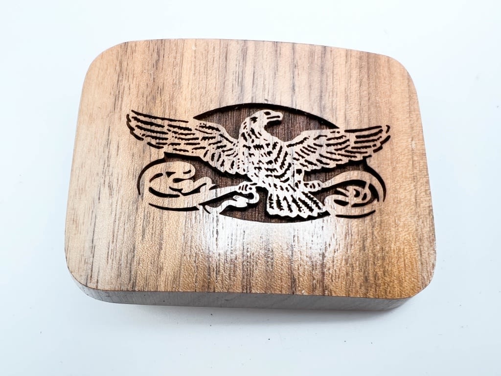LASERCRAFT CARVED WOOD FLYING EAGLE BUCKLE