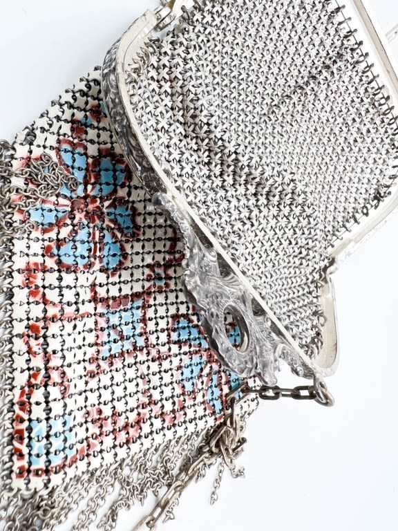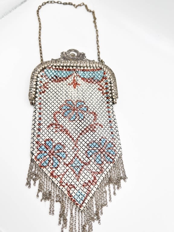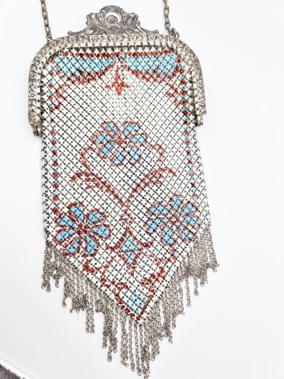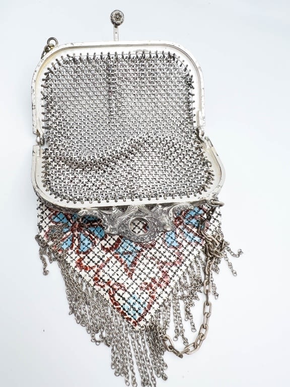 FOIL MESH PURSE WITH DESIGN AND TOGGLE SNAP CLOSURE NICE