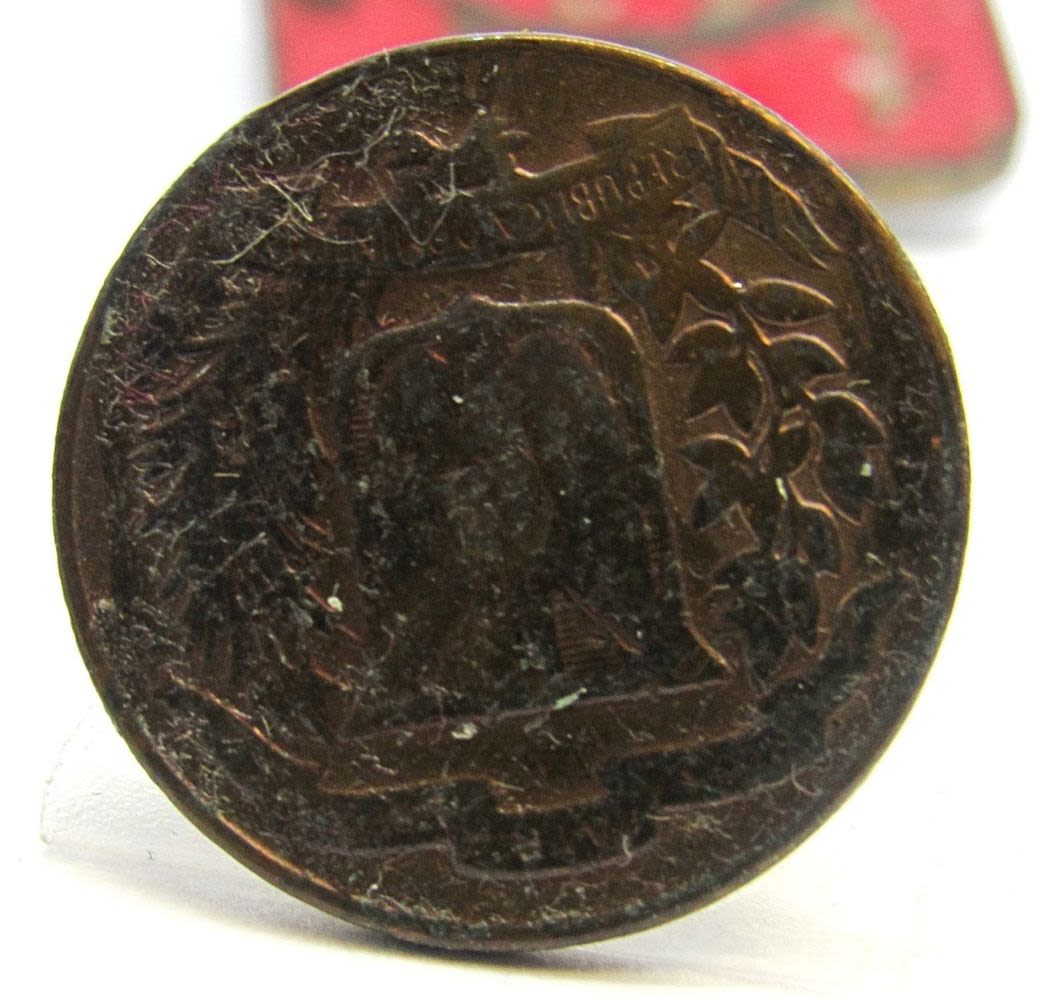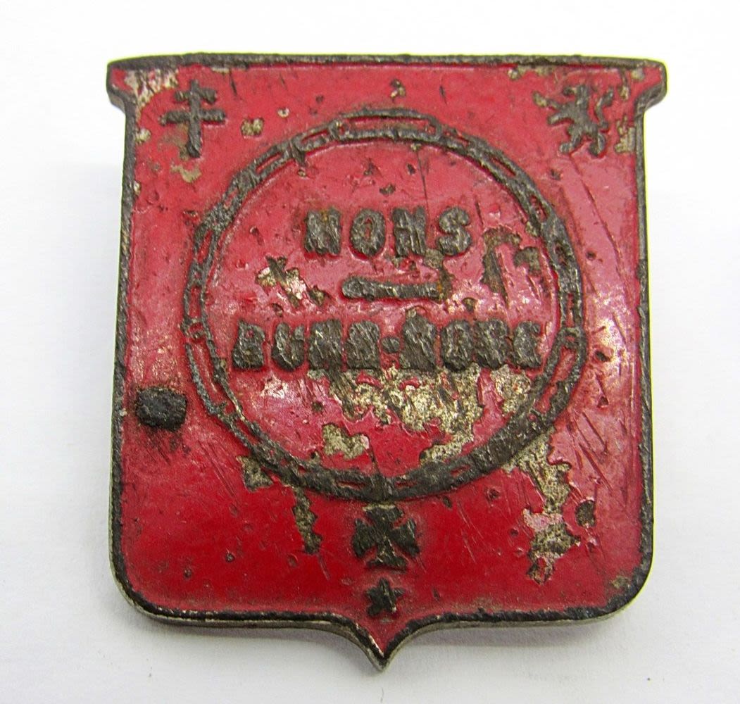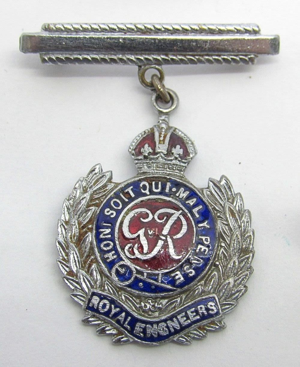 GRANITED; RUSSIAN STAR HAT PIN with chip; ROYAL ENGINEERS PIN, BUTTON with WING INSIGNIA, SCREW BACK RED FOREIGN PIN & FOREIGN COIN MADE INTO PIN