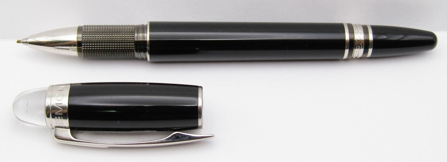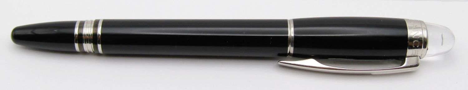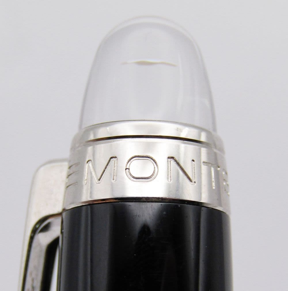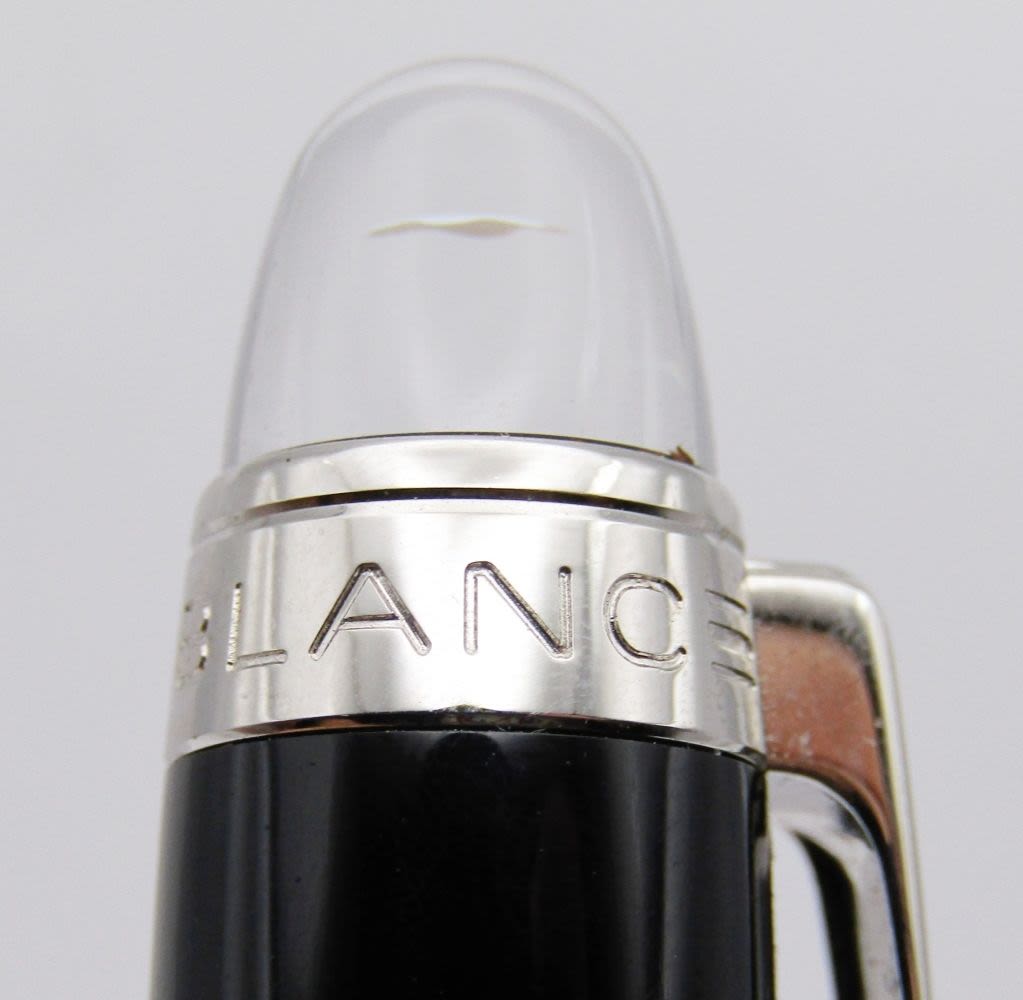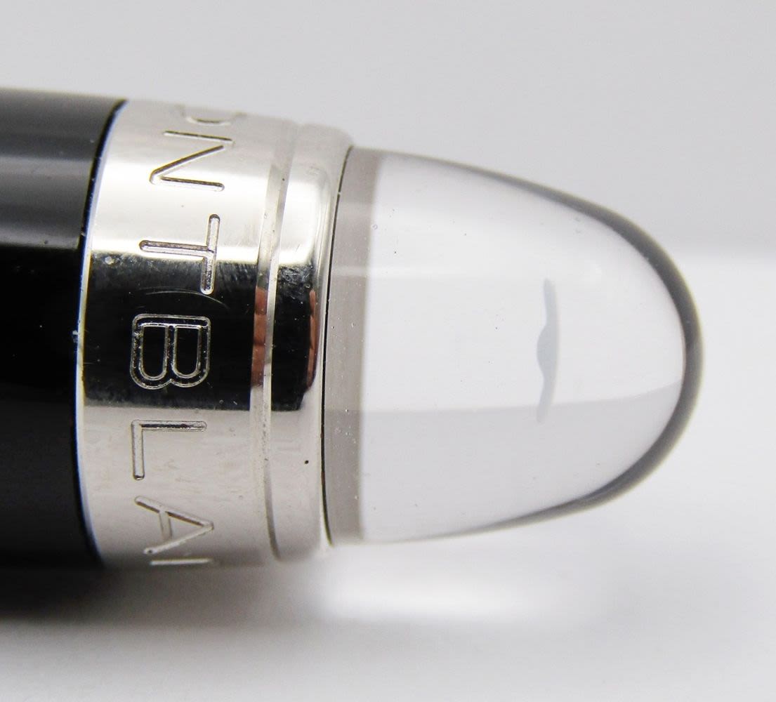 FEATURES FLOATING MONTBLANC EMBLEM IN A TRANSLUCENT DOME; USED BUT GOOD CONDITION; INK IS ASSUMED TO BE DRIED AND NEEDS REPLACED.