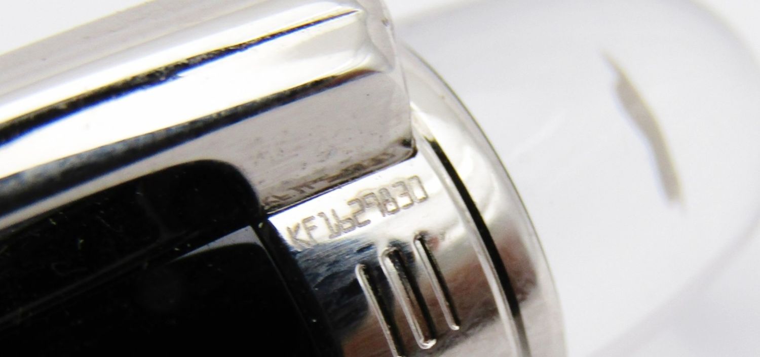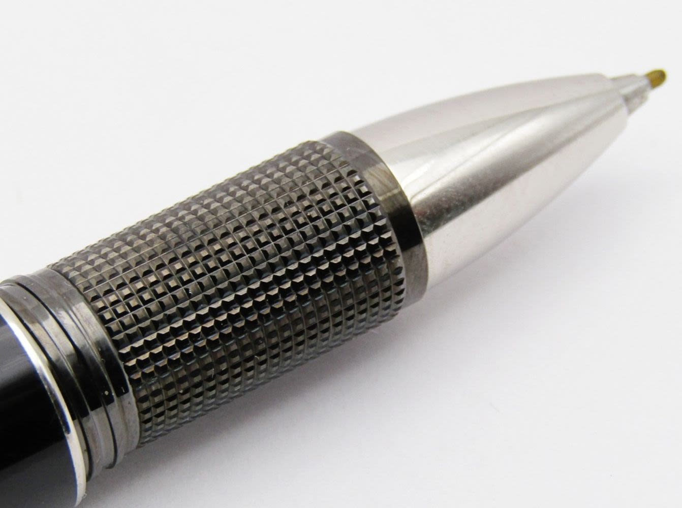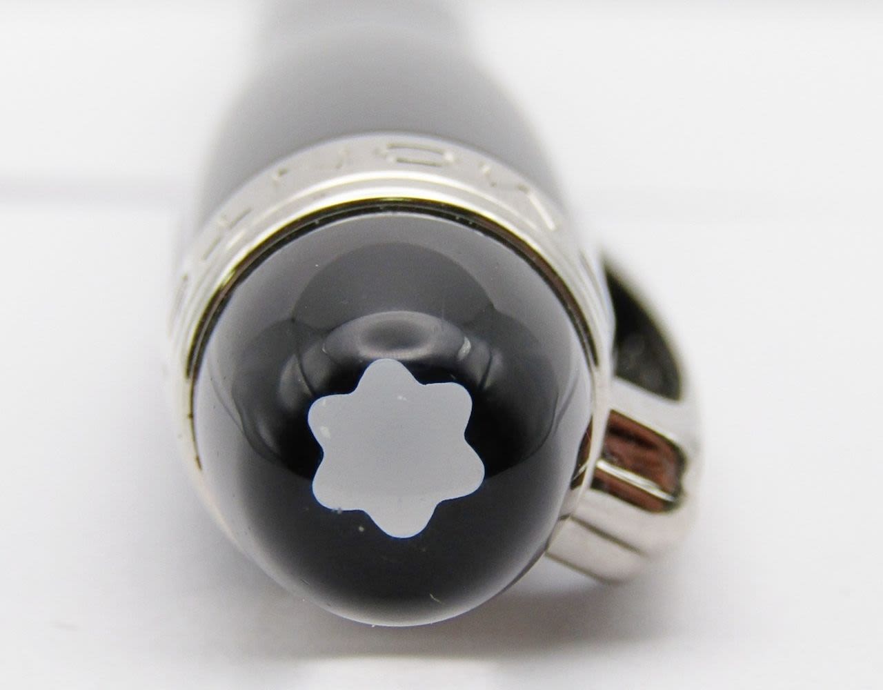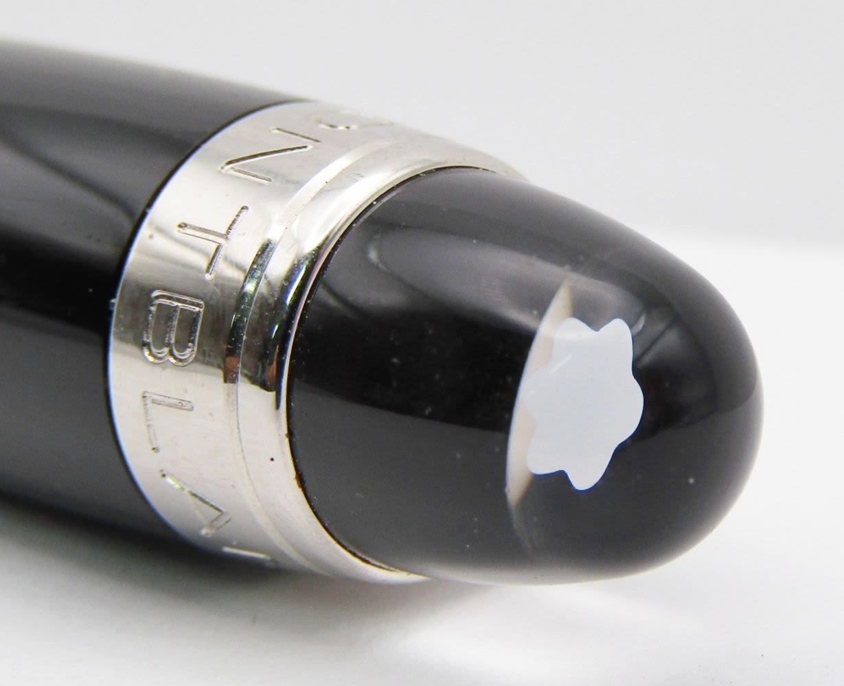 FEATURES FLOATING MONTBLANC EMBLEM IN A TRANSLUCENT DOME; USED BUT GOOD CONDITION; INK IS ASSUMED TO BE DRIED AND NEEDS REPLACED.