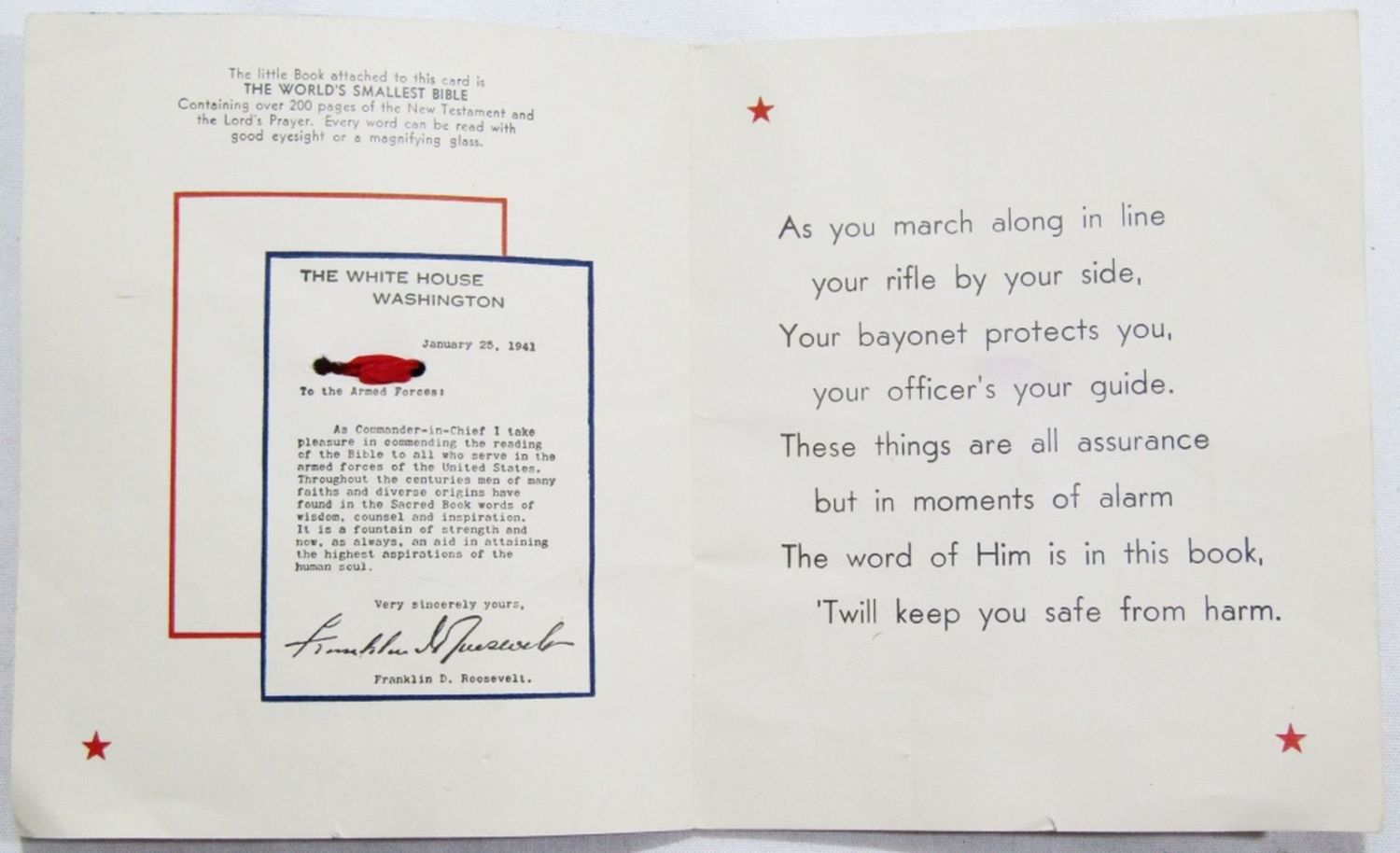 (1) APPROVED PRAYERS FOR CATHOLICS w/METAL COVERING, (1) POCKET PRAYER BOOK, (1) WORLDS SMALLEST BIBLE w/ORIGINAL WHITE HOUSE PAMPHLET