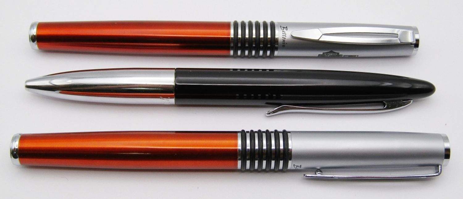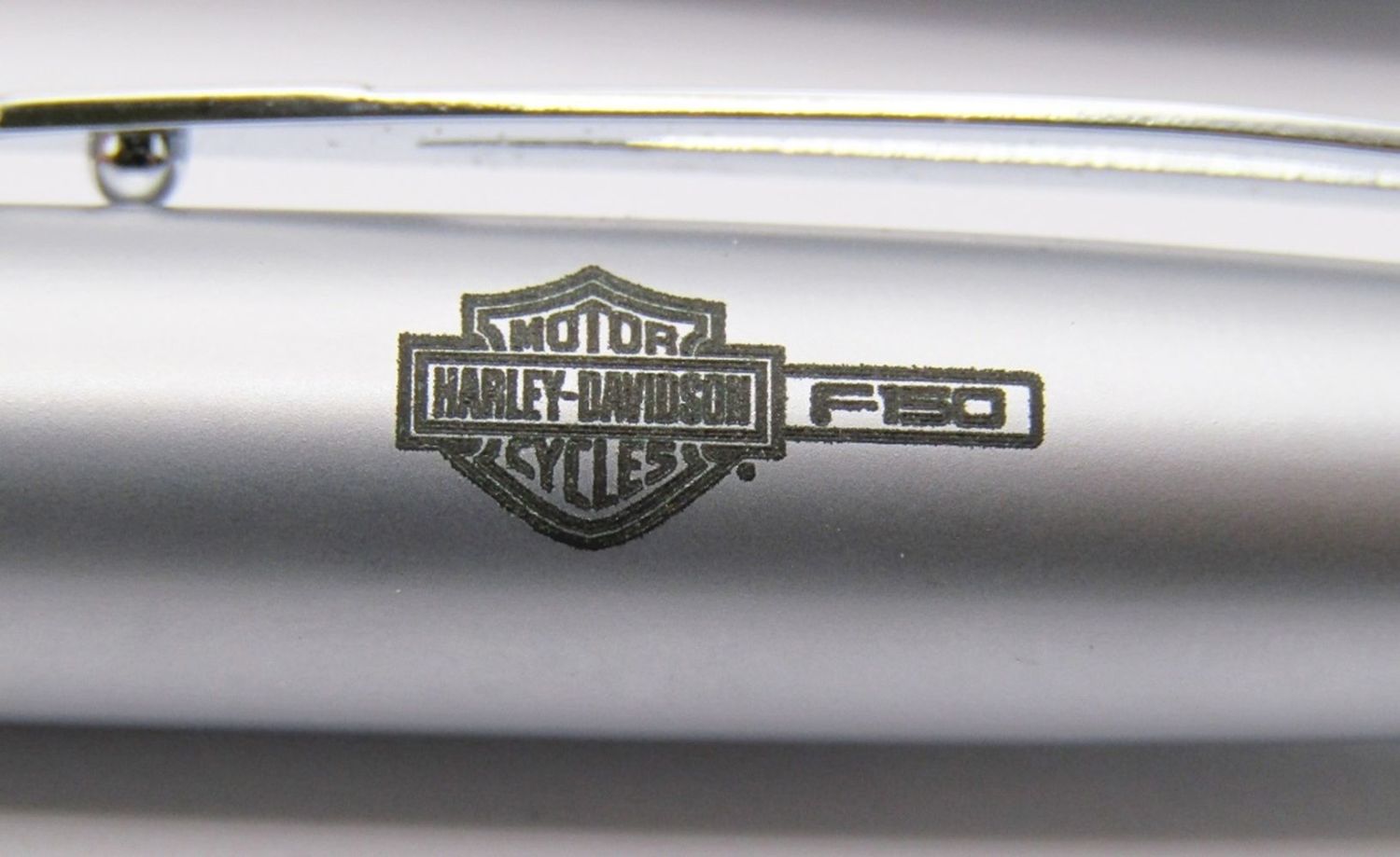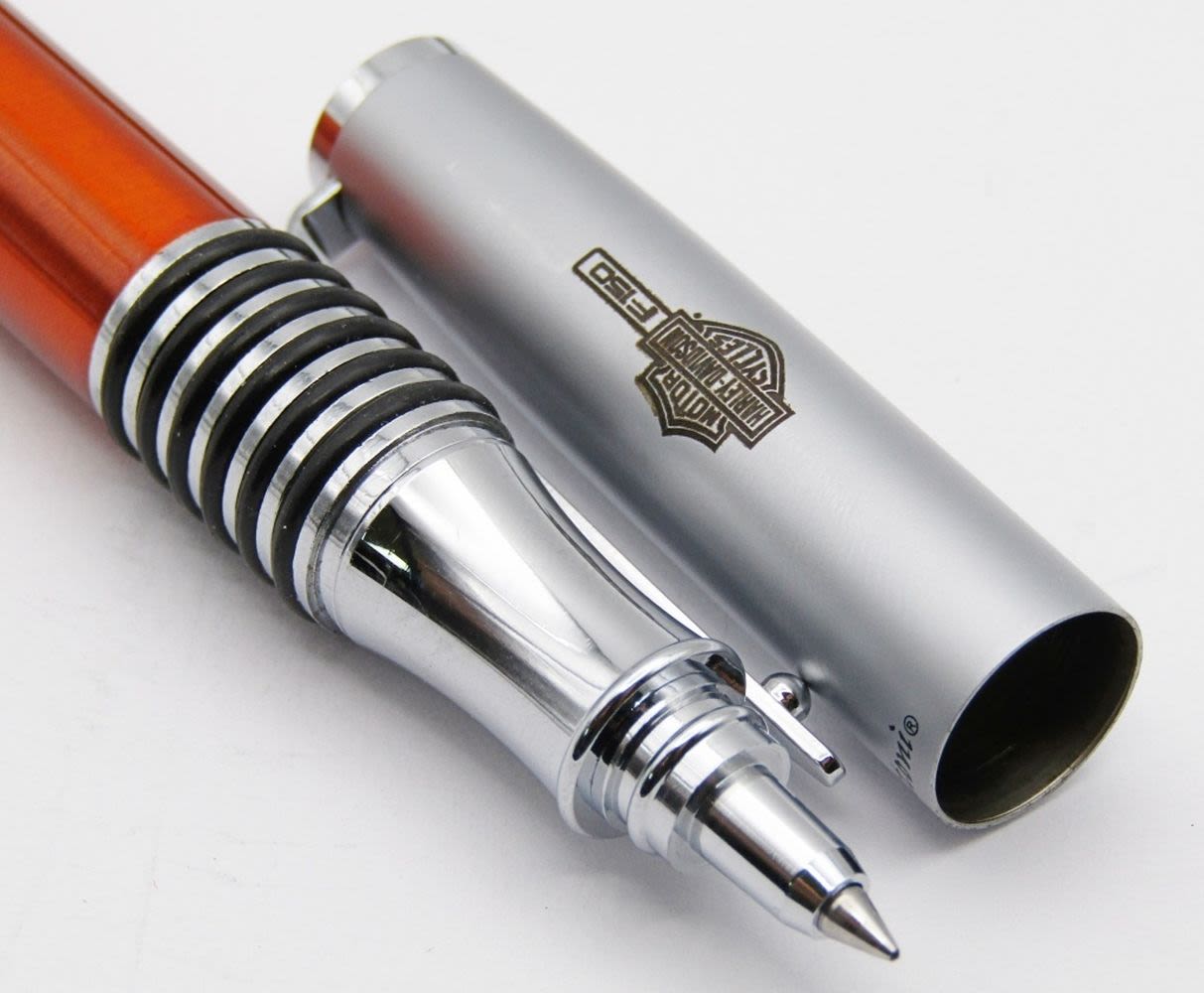 2 ARE ORANGE WITH HARLEY DAVIDSON F150 ENGRAVED ON THE CAP & 1 OF THESE DOES NOT HAVE A PEN FILLER INSIDE, JUST THE BODY OF THE PEN; 1 IS ENGRAVED WITH ‘MUSTANG’ ON THE PEN; GOOD CONDITONS!