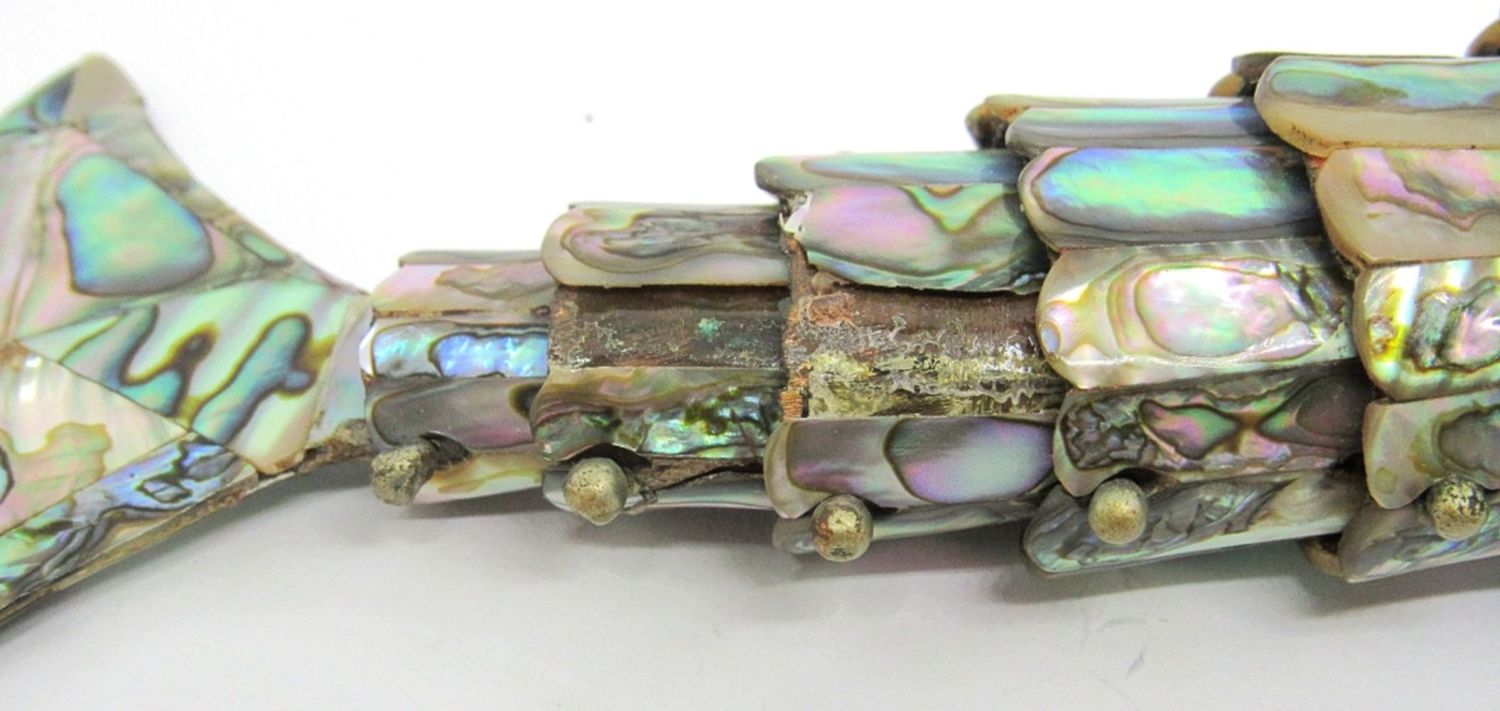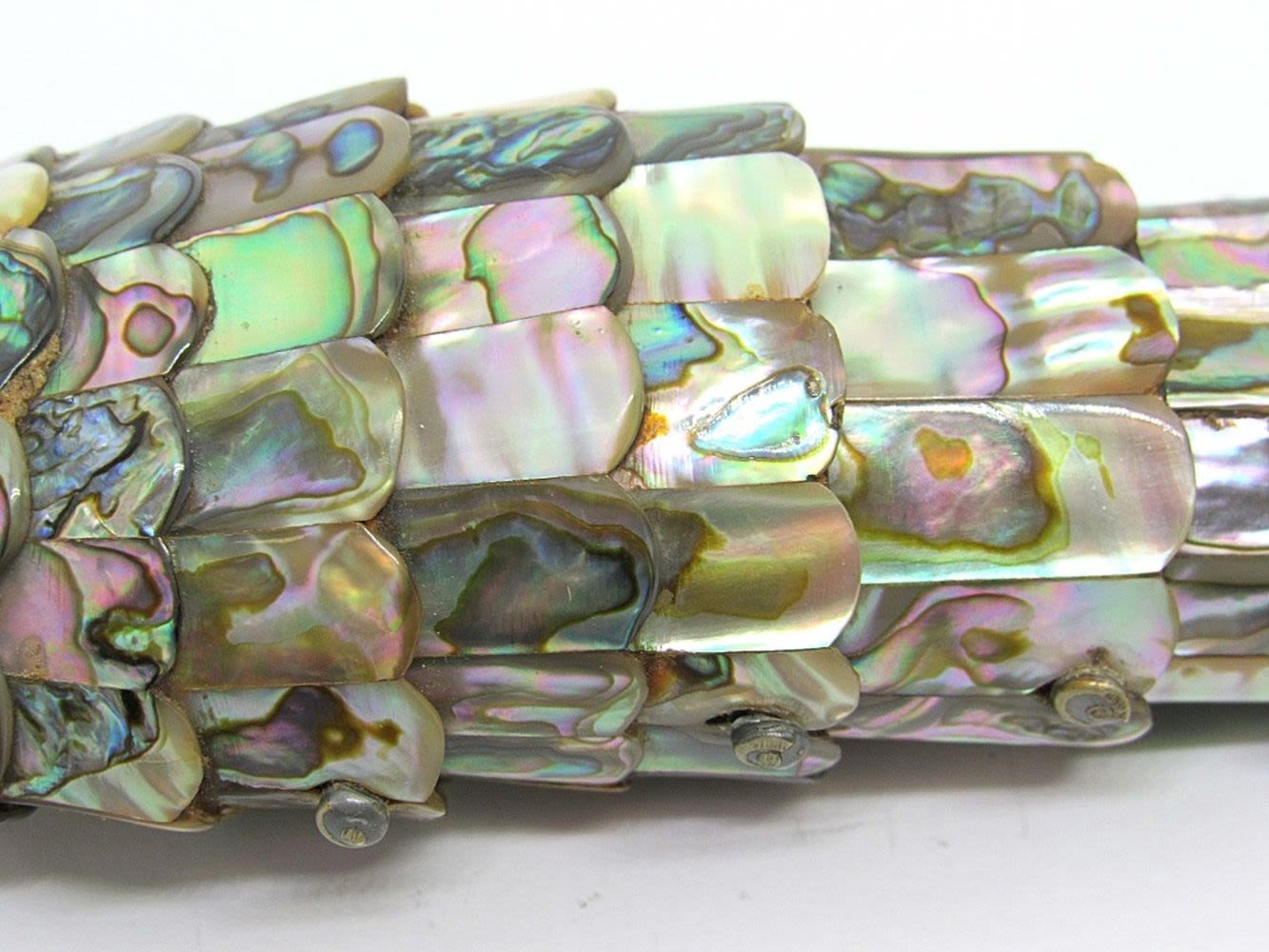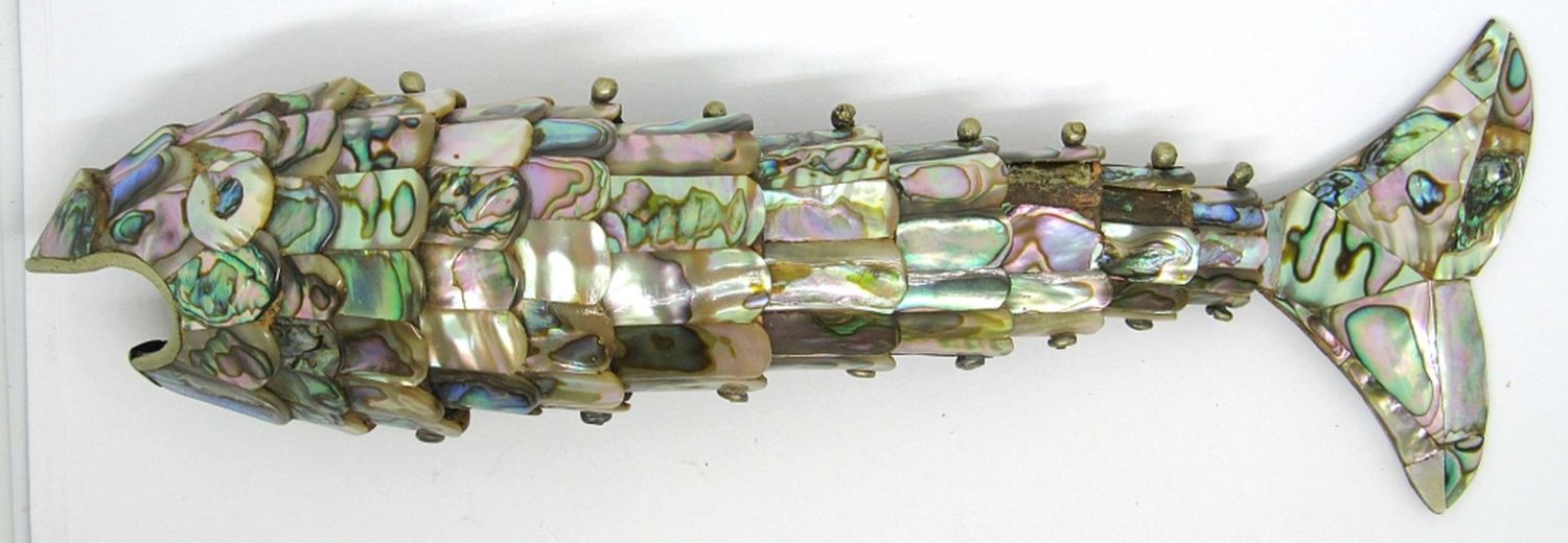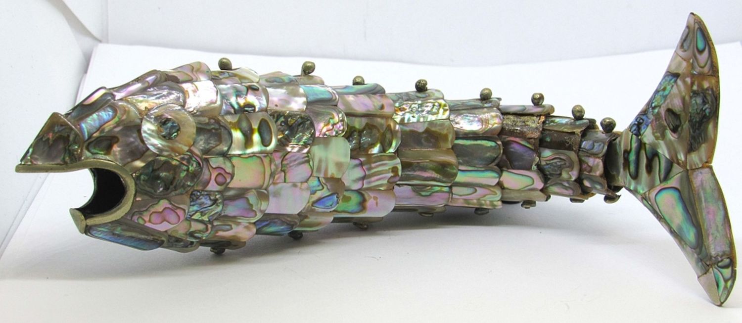 BEAUTIFUL UNIQUE SEASHELL BOTTLE OPENER, A FEW MISSING PIECES. 8 IN