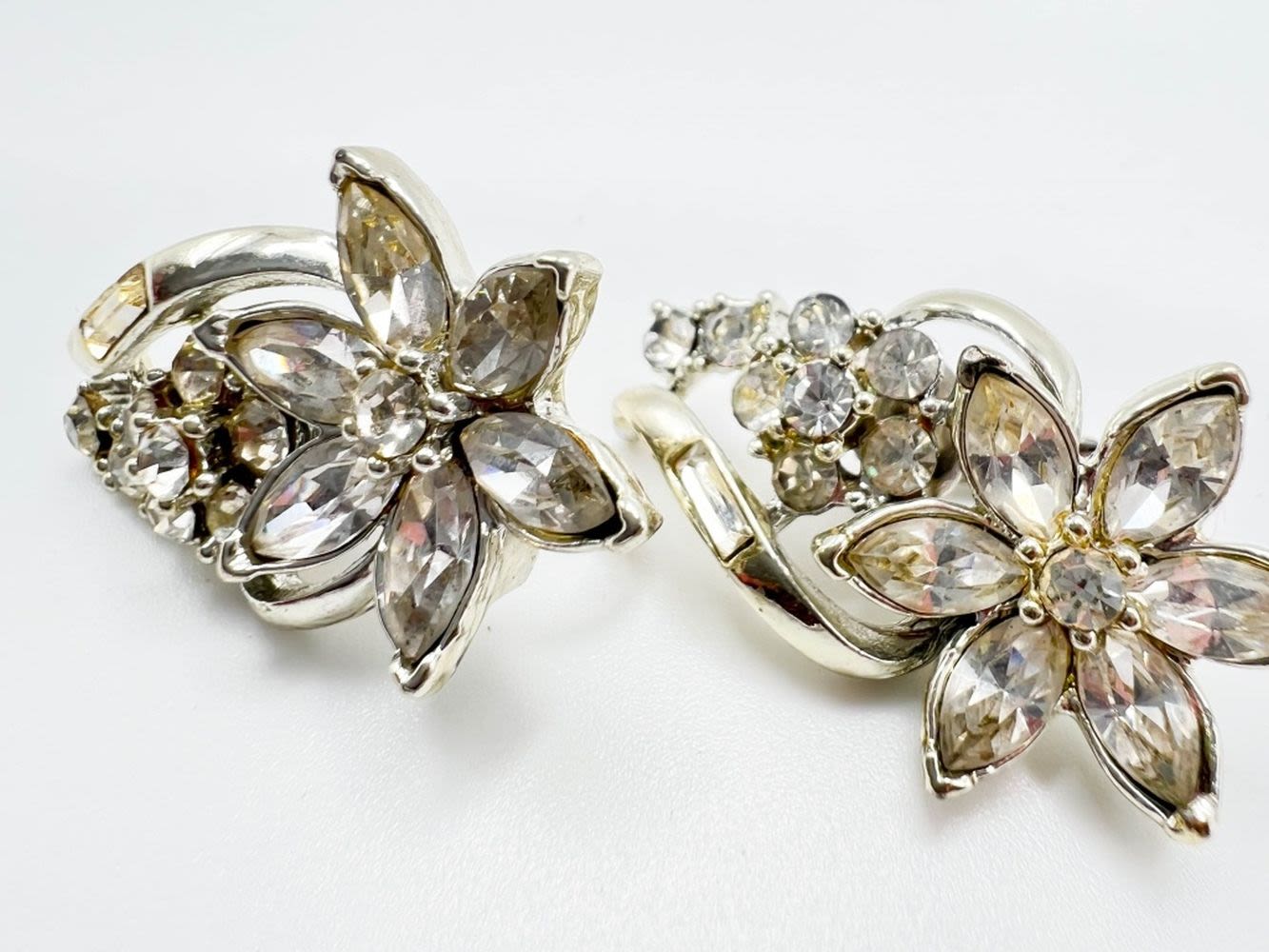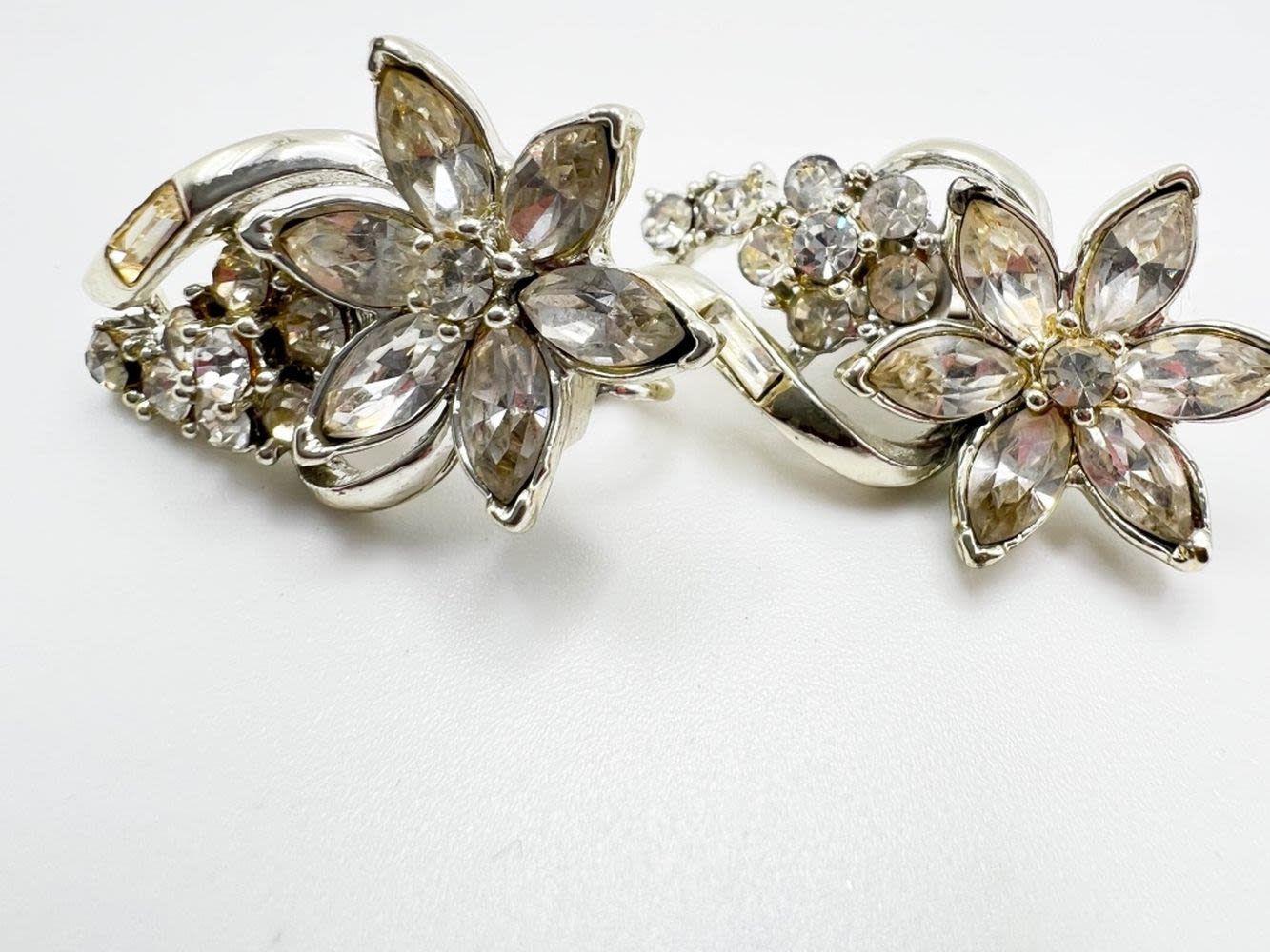 CORO SIGNED RHINESTONE FLORAL EARRINGS SET