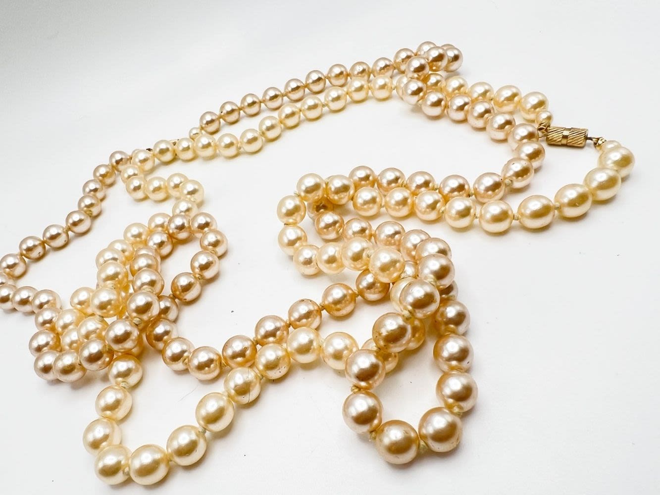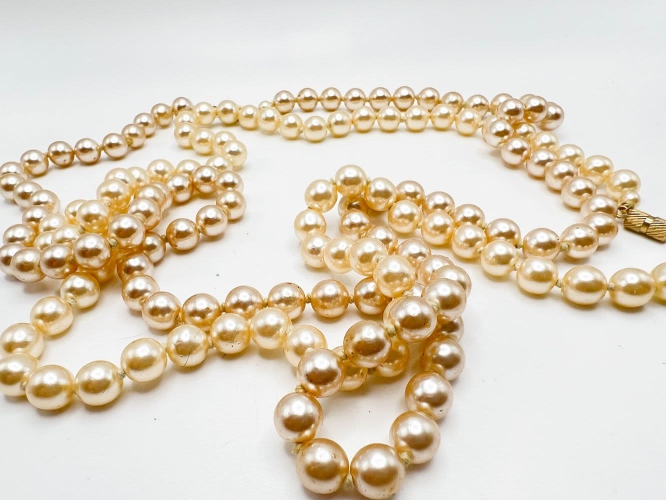 FAUX PEARL NECKLACE WITH GOLD TONE BARREL CLASP