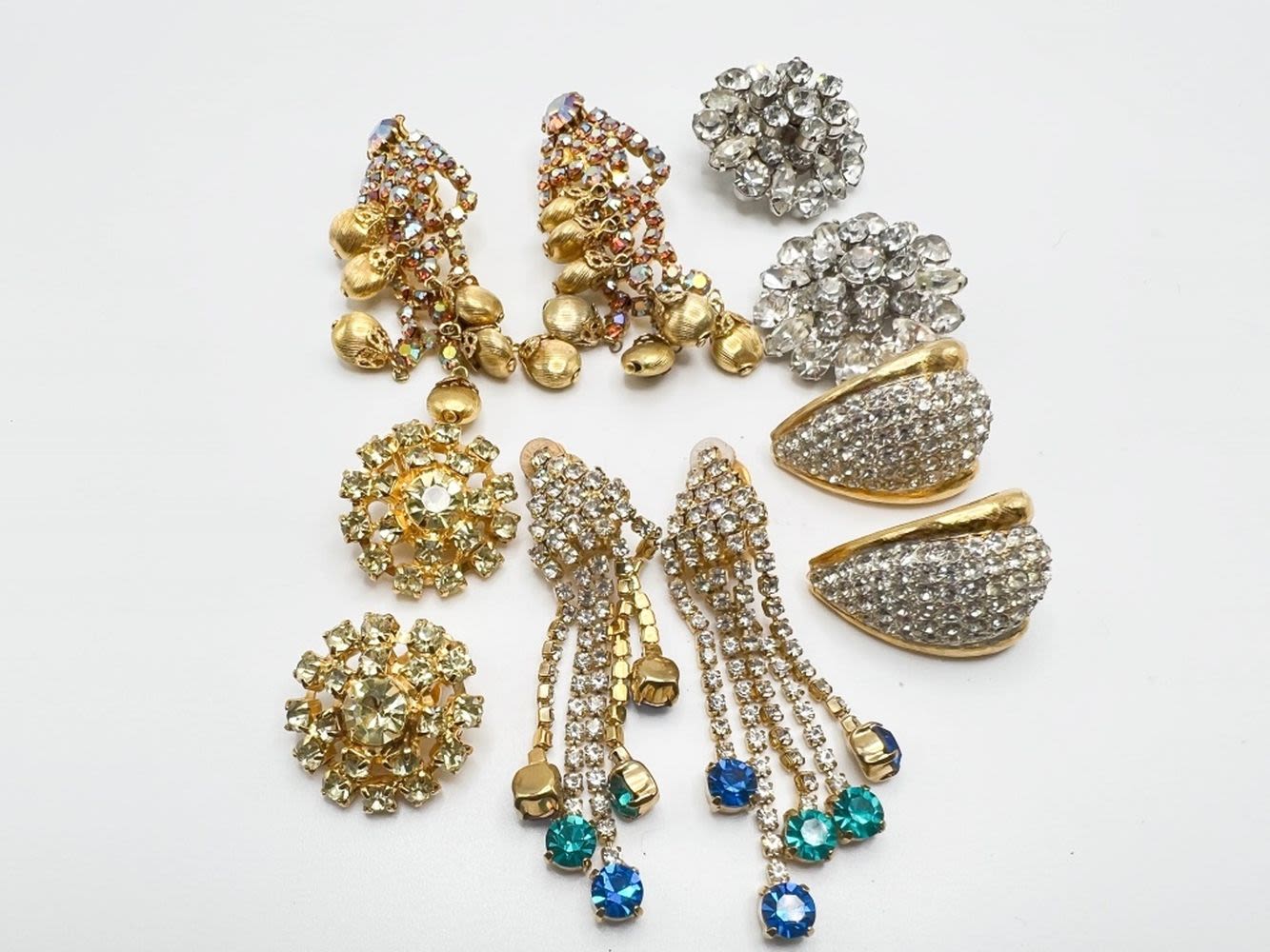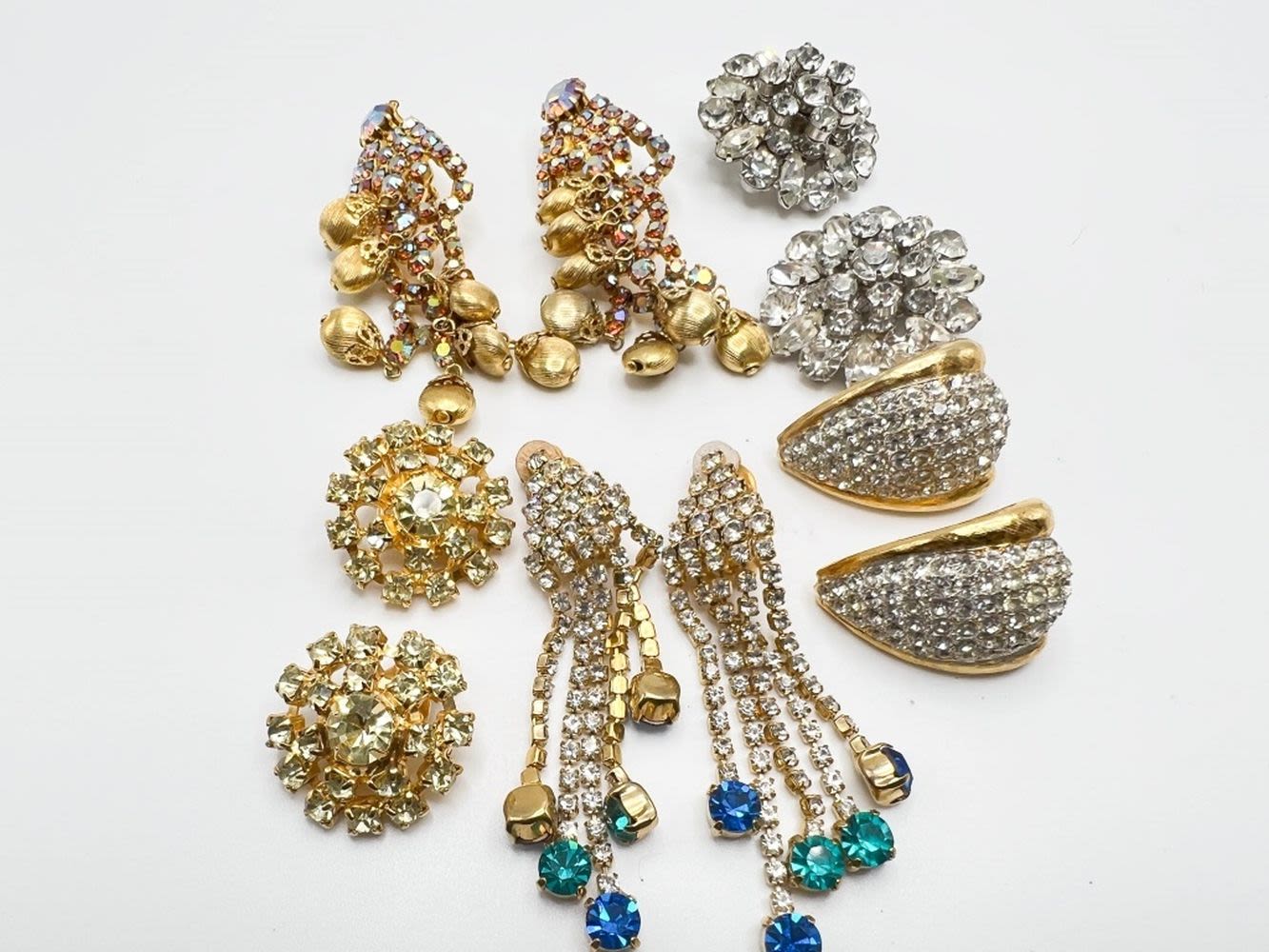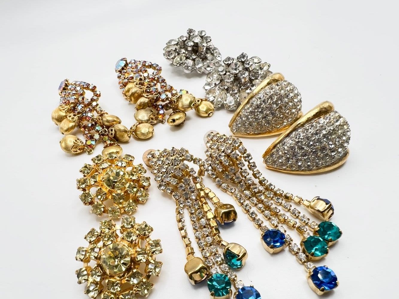 FANCY DINNER EARRINGS LOT, ABUNDANT STONES, SO PRETTY