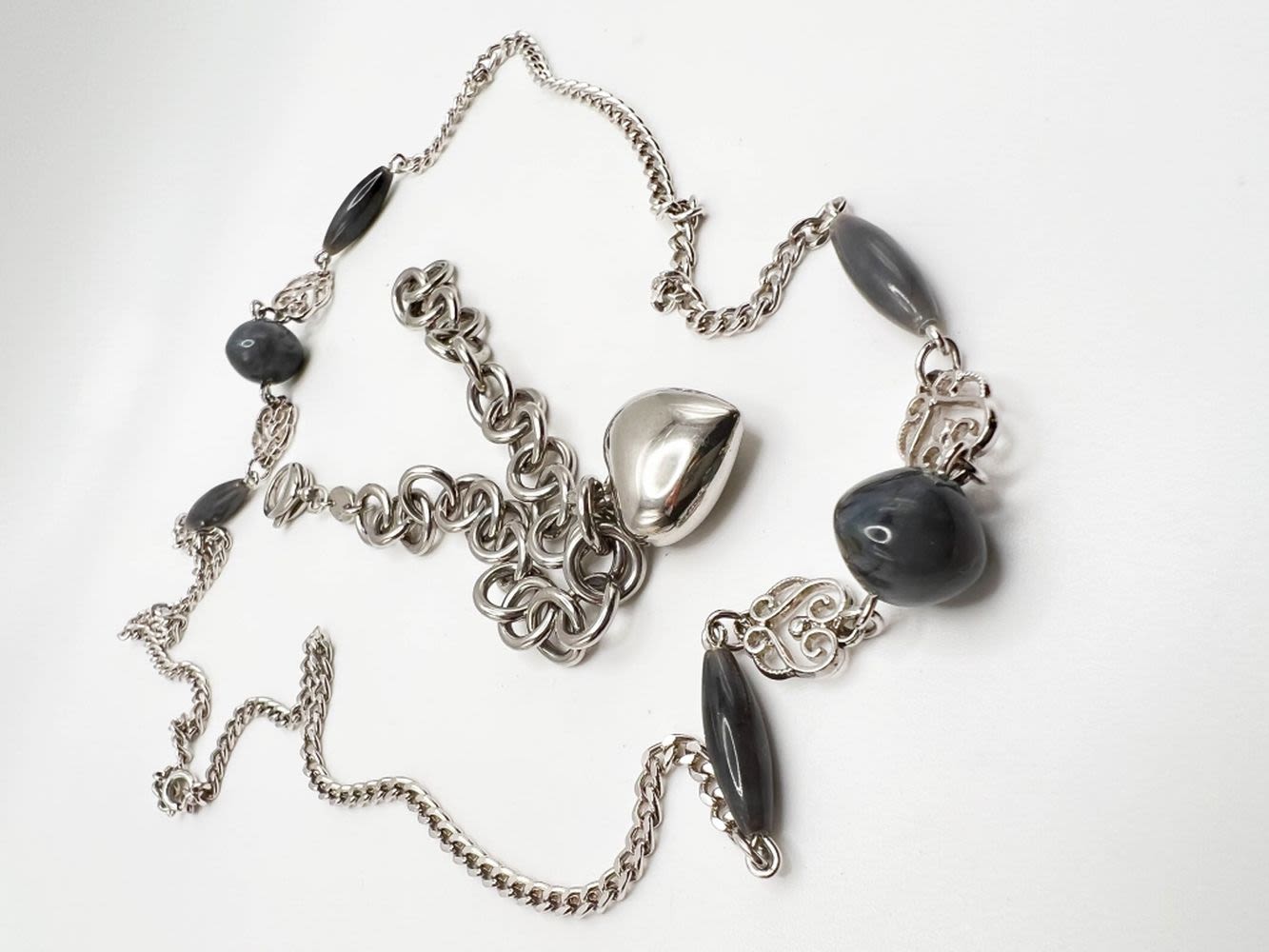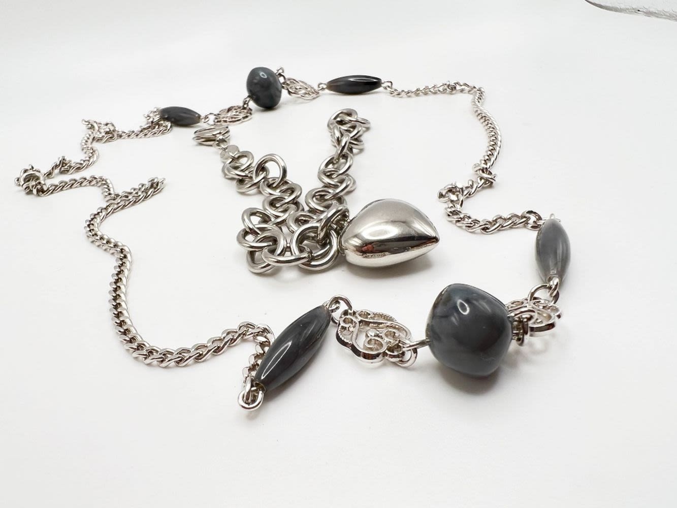 HEART PENDANT NECKLACE WITH GREY STONE ACCENTS