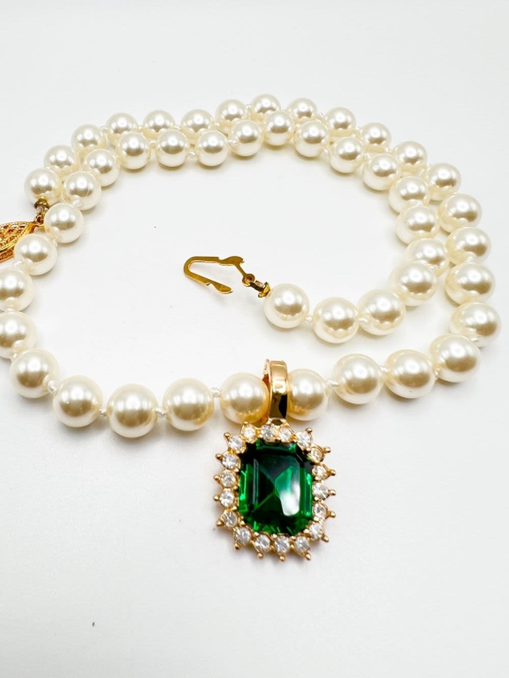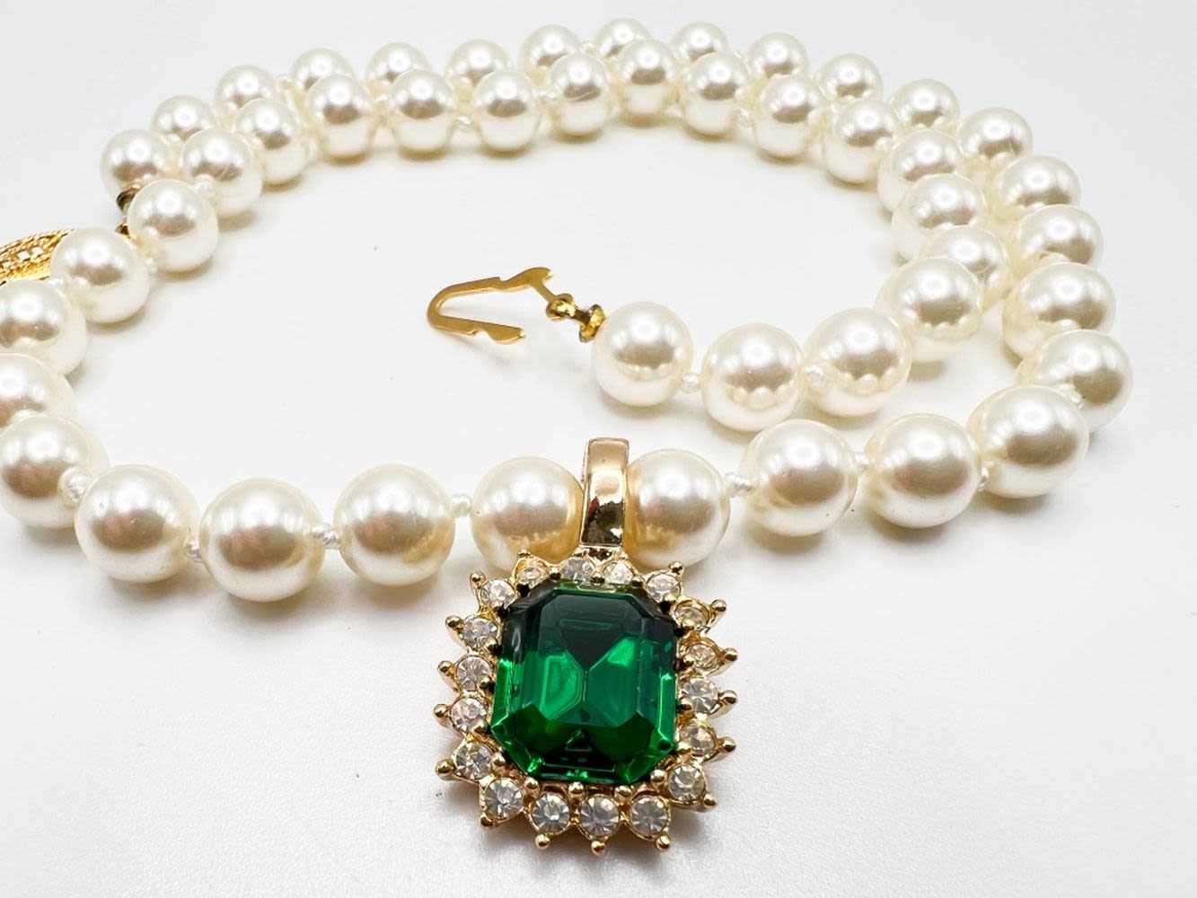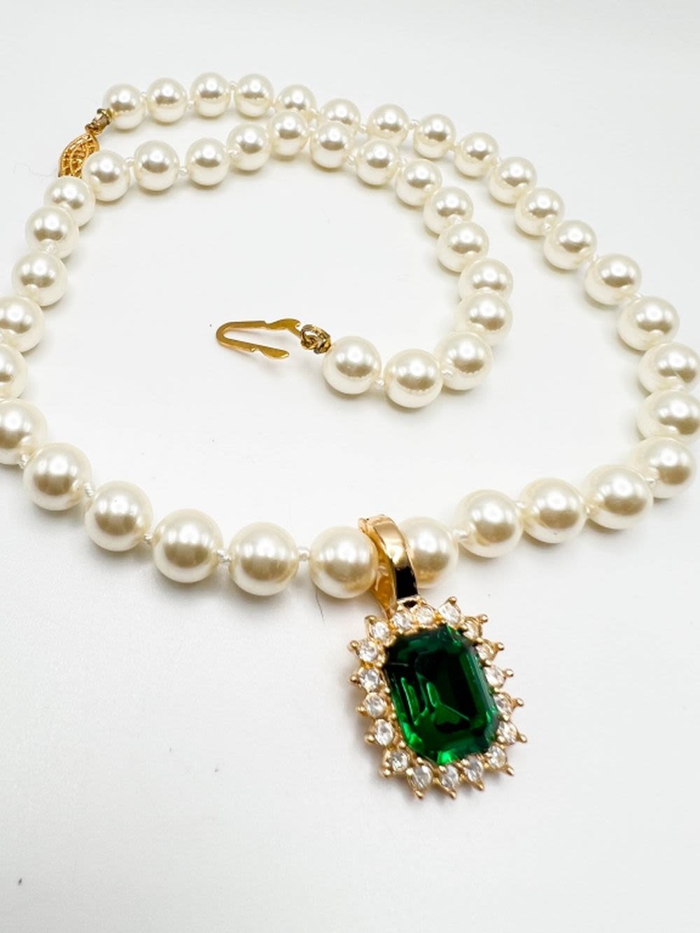 ROMAN SIGNED FACETED GREEN STONE WITH CLEAR STONE SURROUND NECKLACE, LIKE NEW , BEAUTIFUL