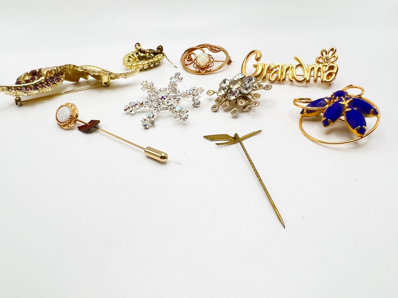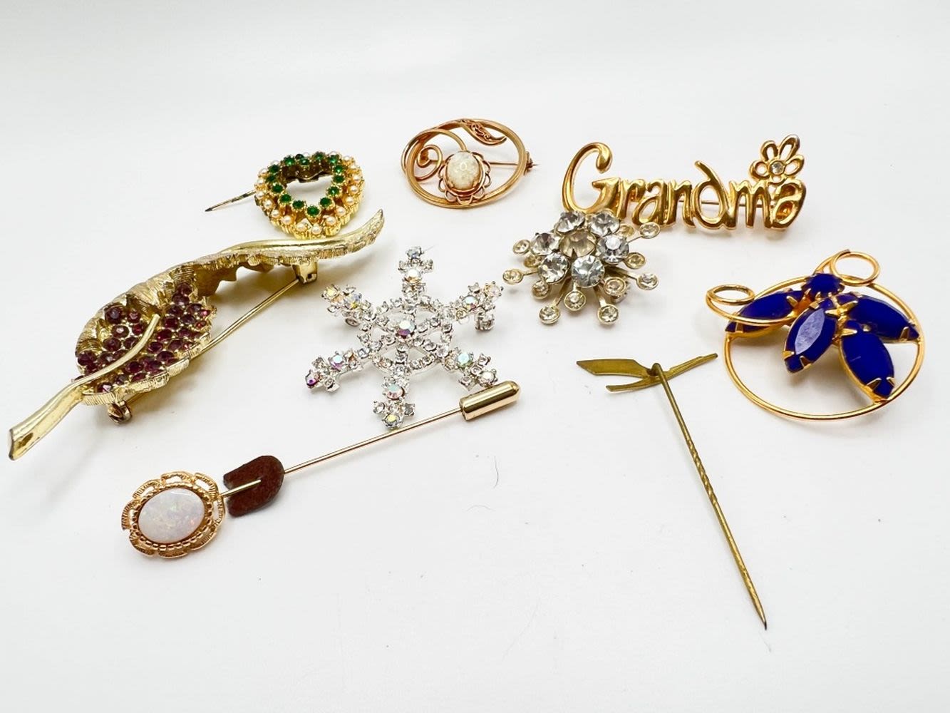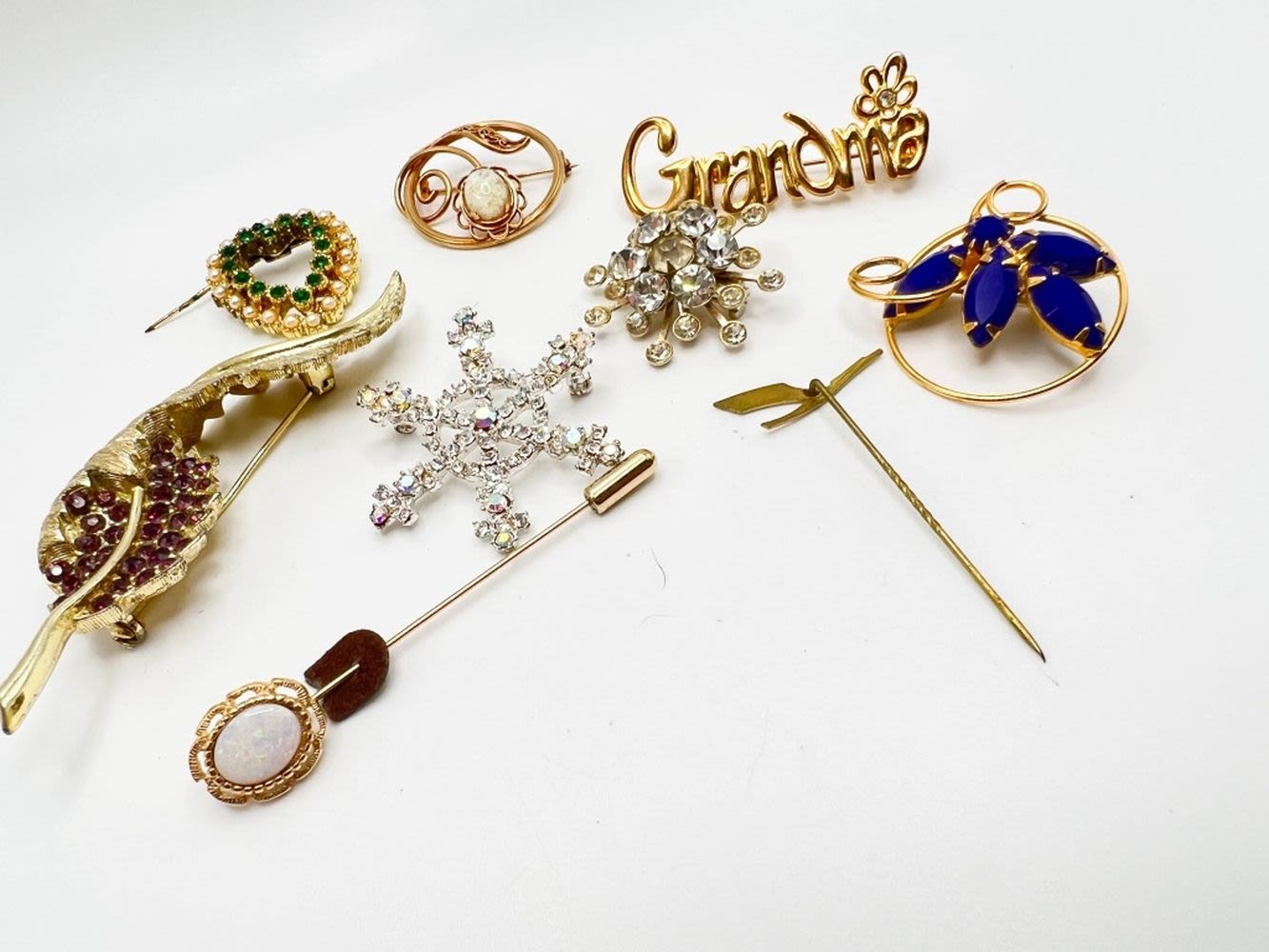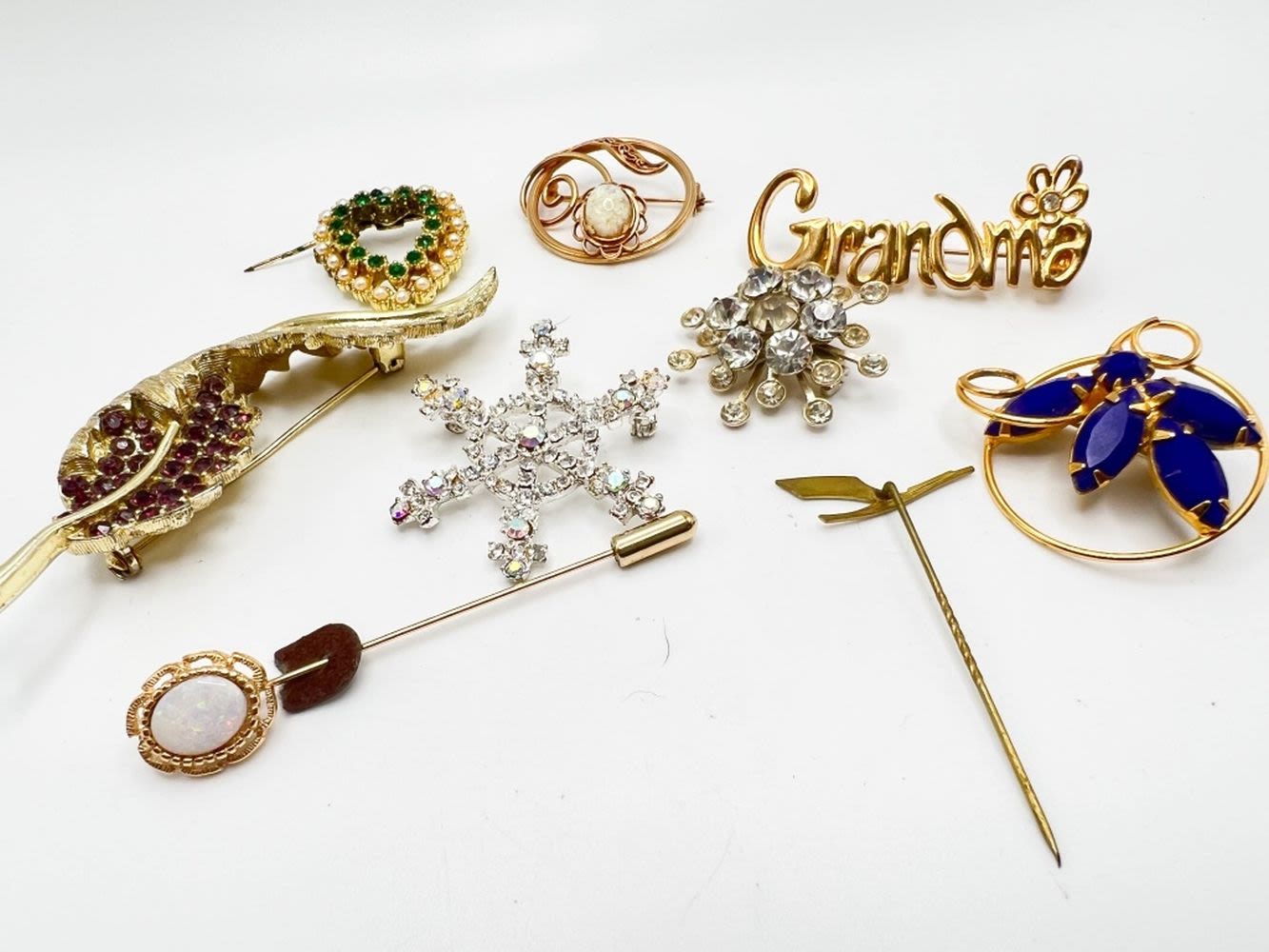 BROOCHES, GRANDMA AND BLUE STONE, HEART AND MORE BROOCHES