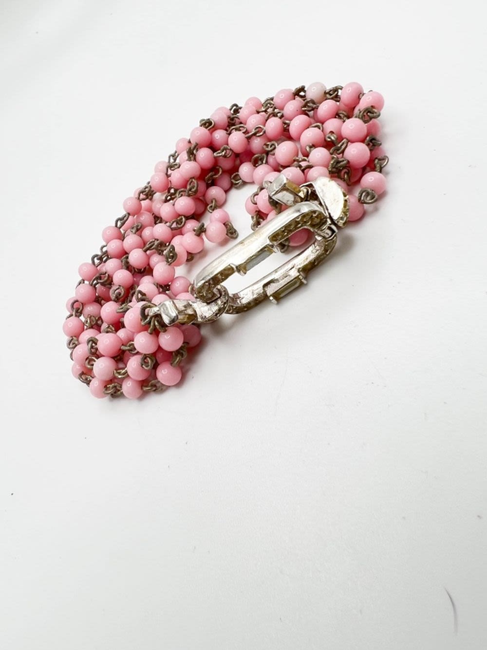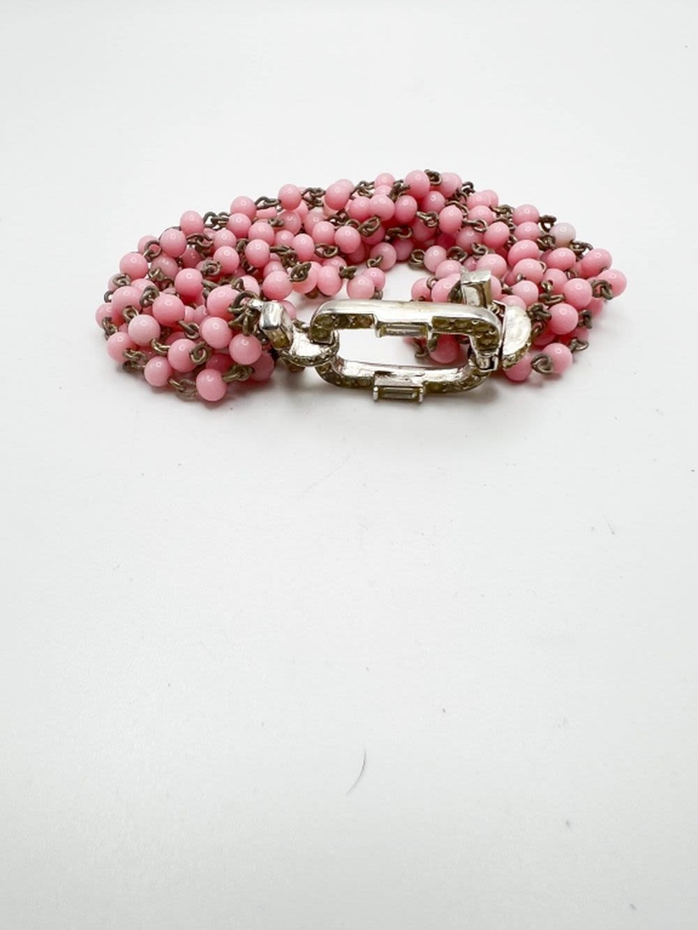 VINTAGE FAUX PINK PEARL TRIPLE BRACELET WITH STONE CLASP