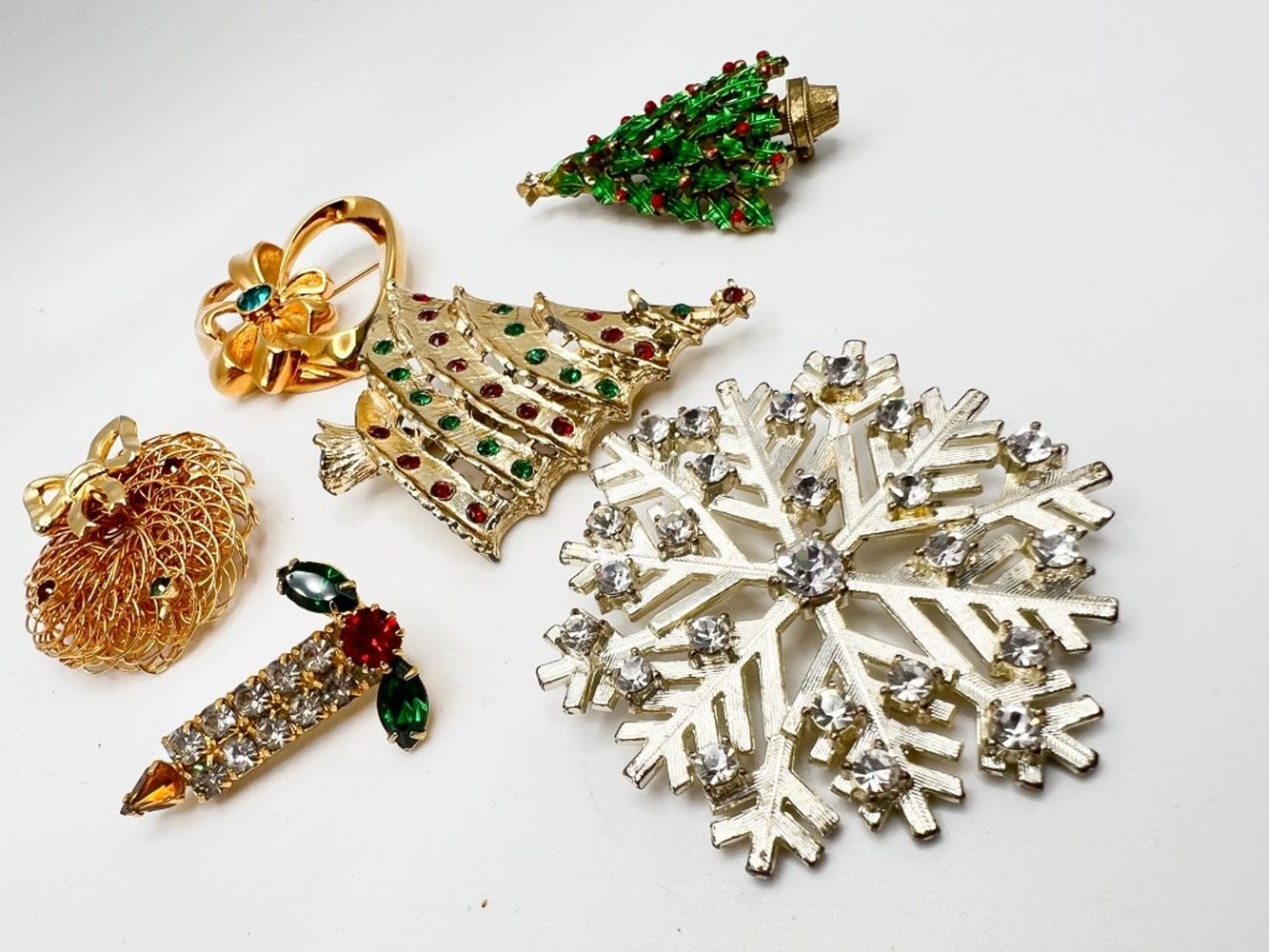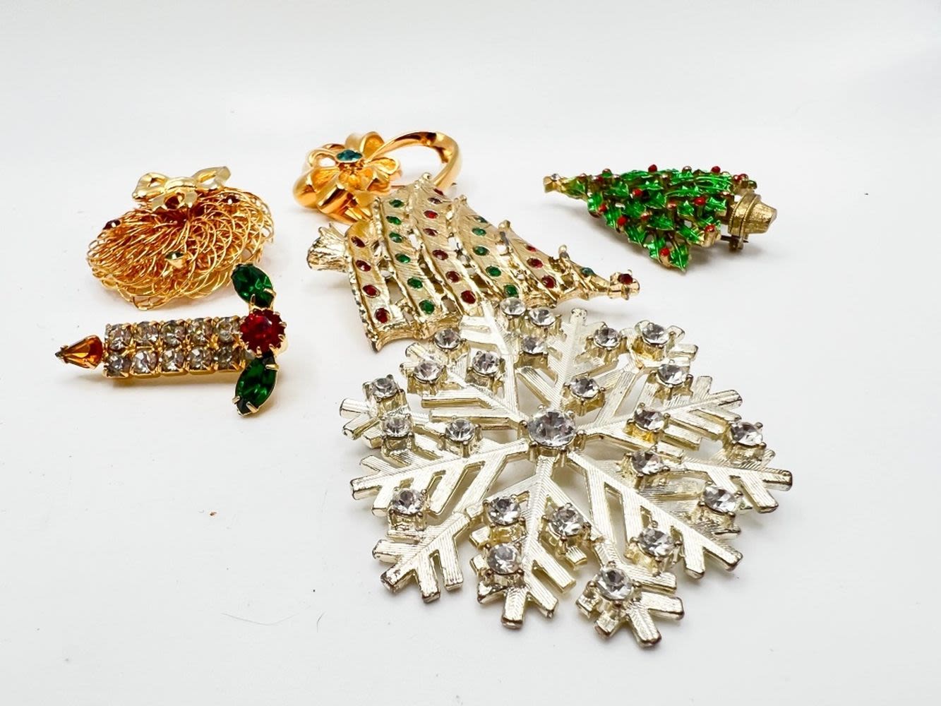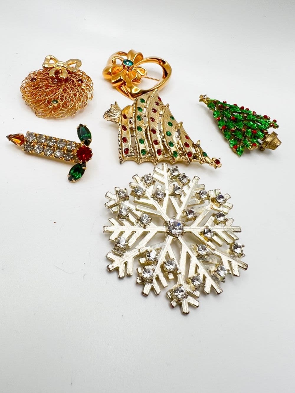 CHRISTMAS BROOCH LOTTREE, BOW, WREATH, CANDLE AND MORE