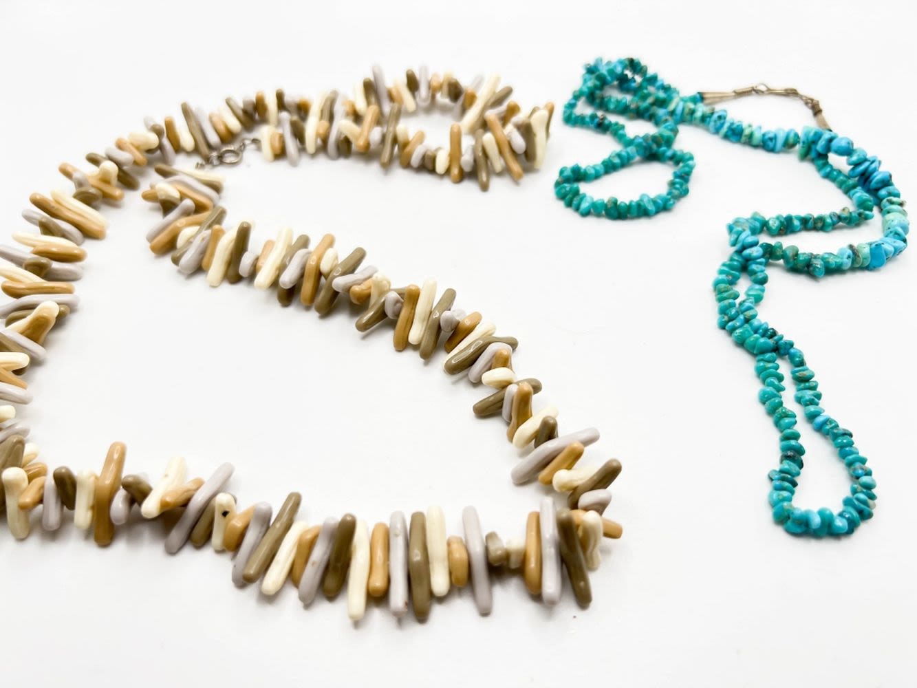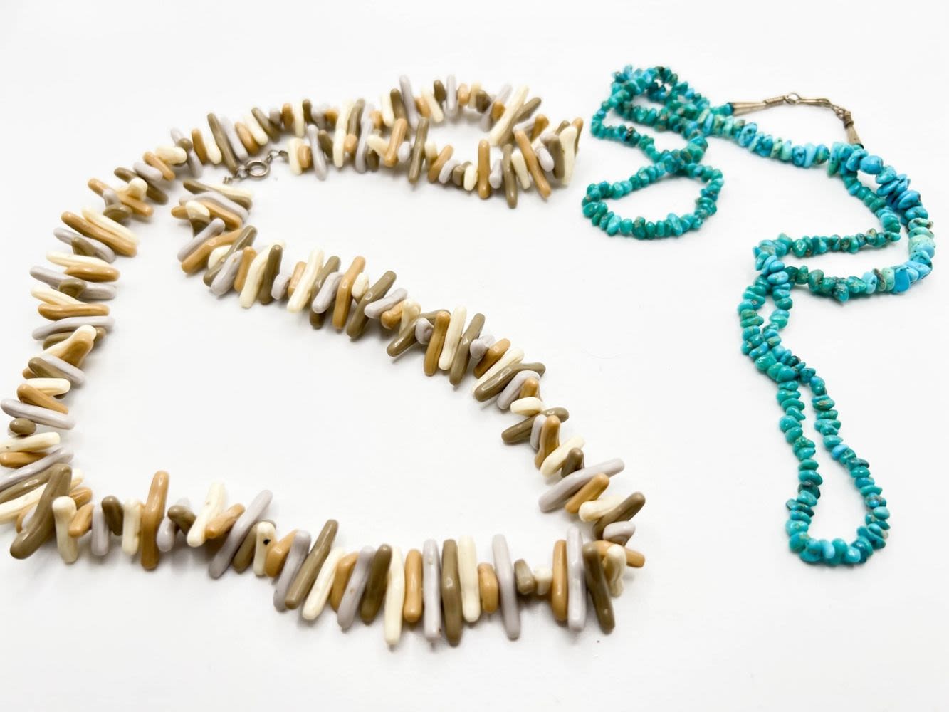 TWO PRETTY NECKLACES, TANS , TURQUISES