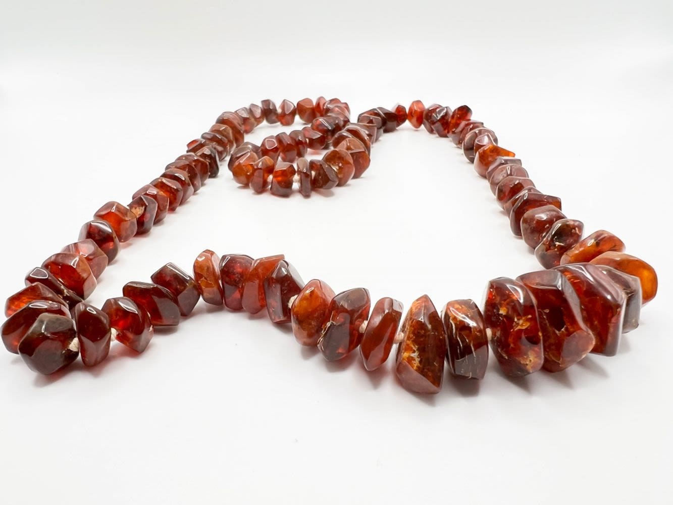 LARGE RED STONE NECKLACE KNOTTED WITH HEAVY STRING