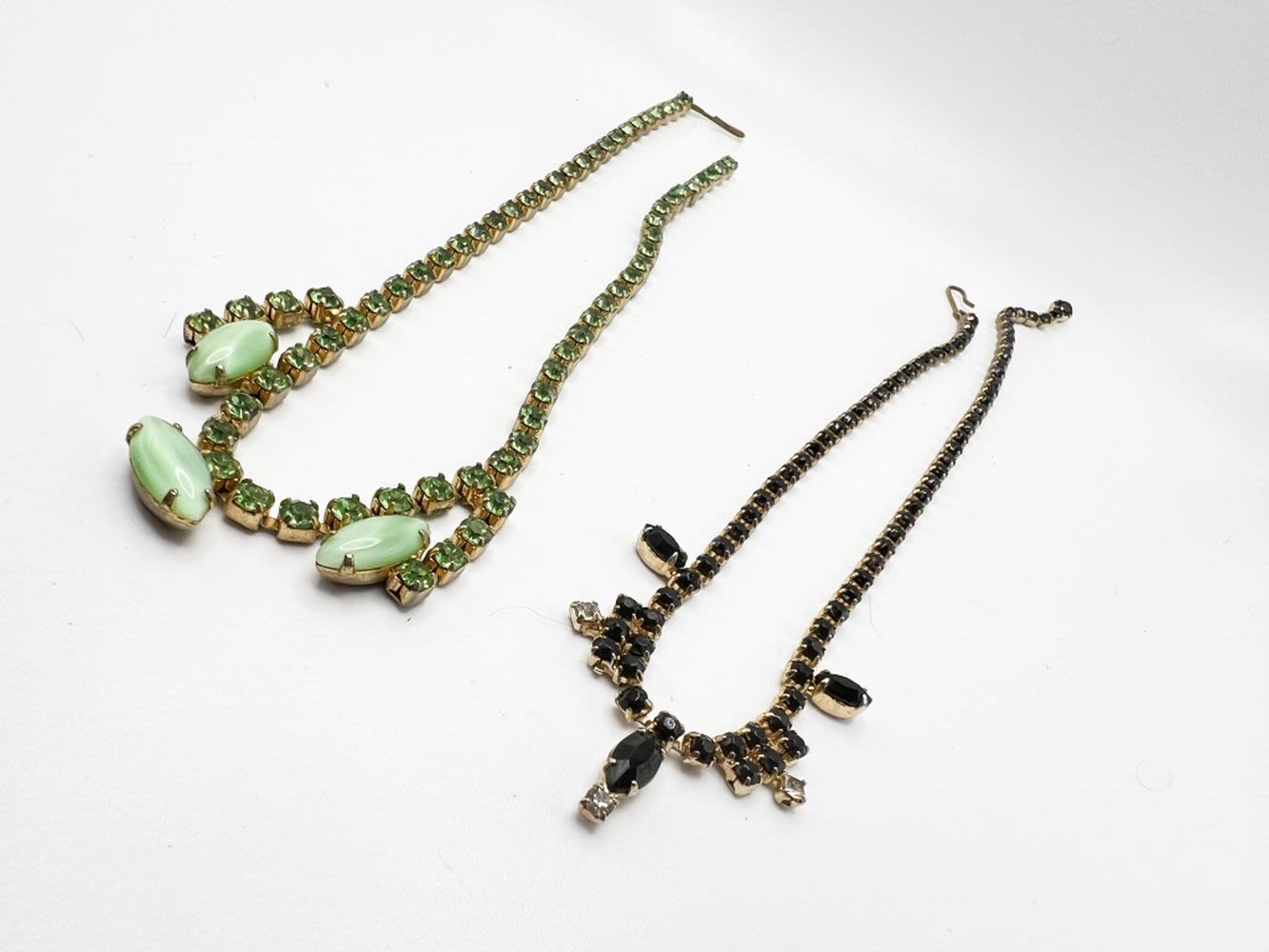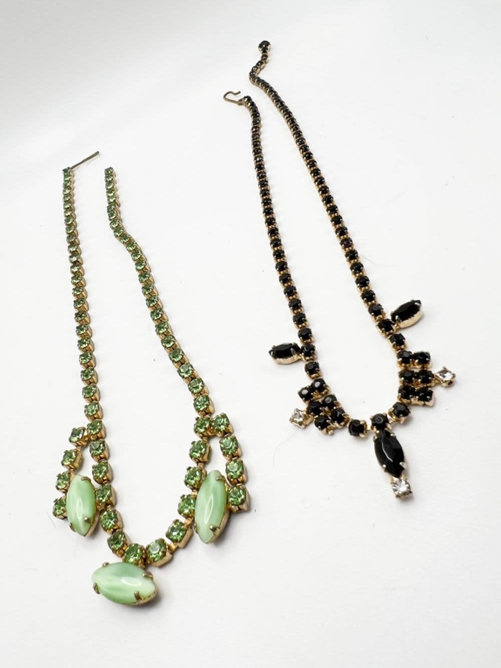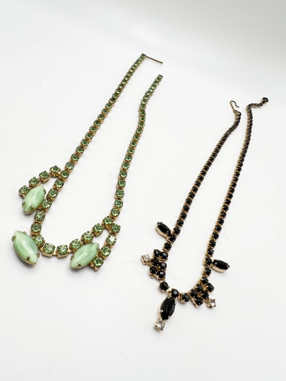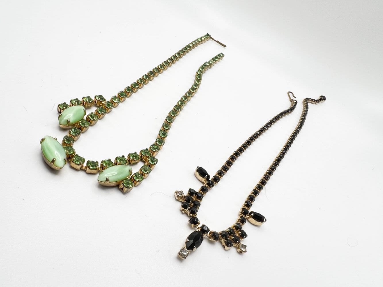 TWO STUNNER VINTAGE STONE NECKLACES , ONE GREENS, ONE BLACKS STONES
