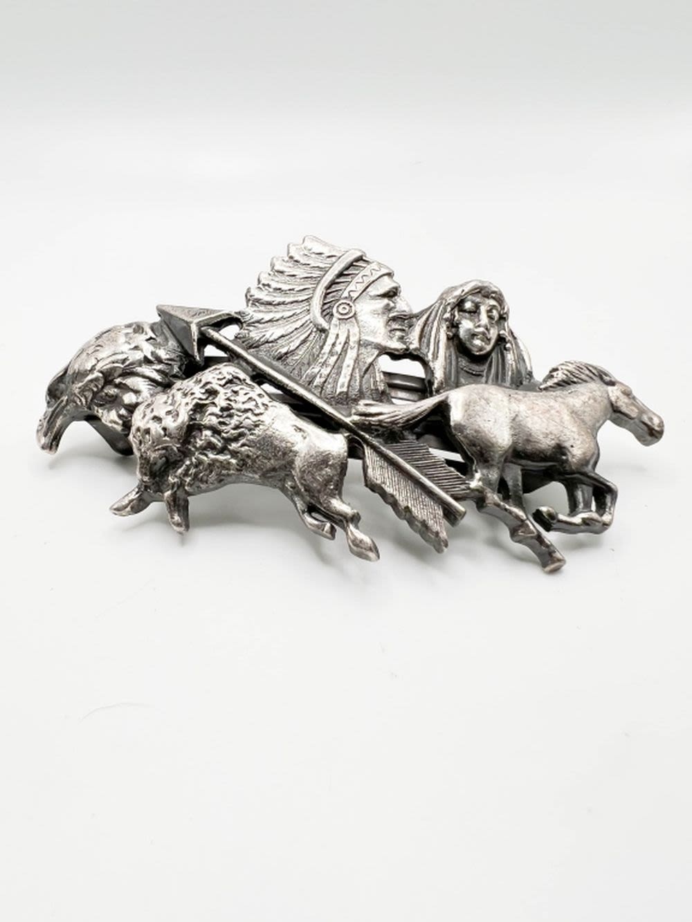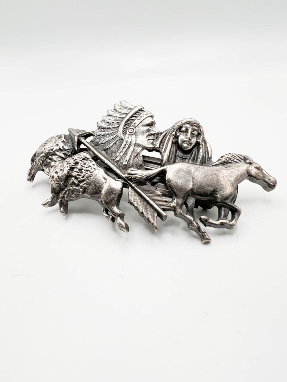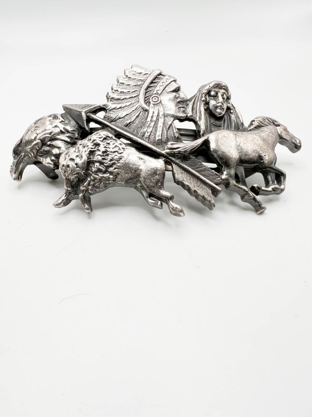 UNIQUE LARGE HAIR CLIP, HORSES, BUFFALO INDIAN ARROW DESIGN , MARKED MADE IN FRANCE 252-1