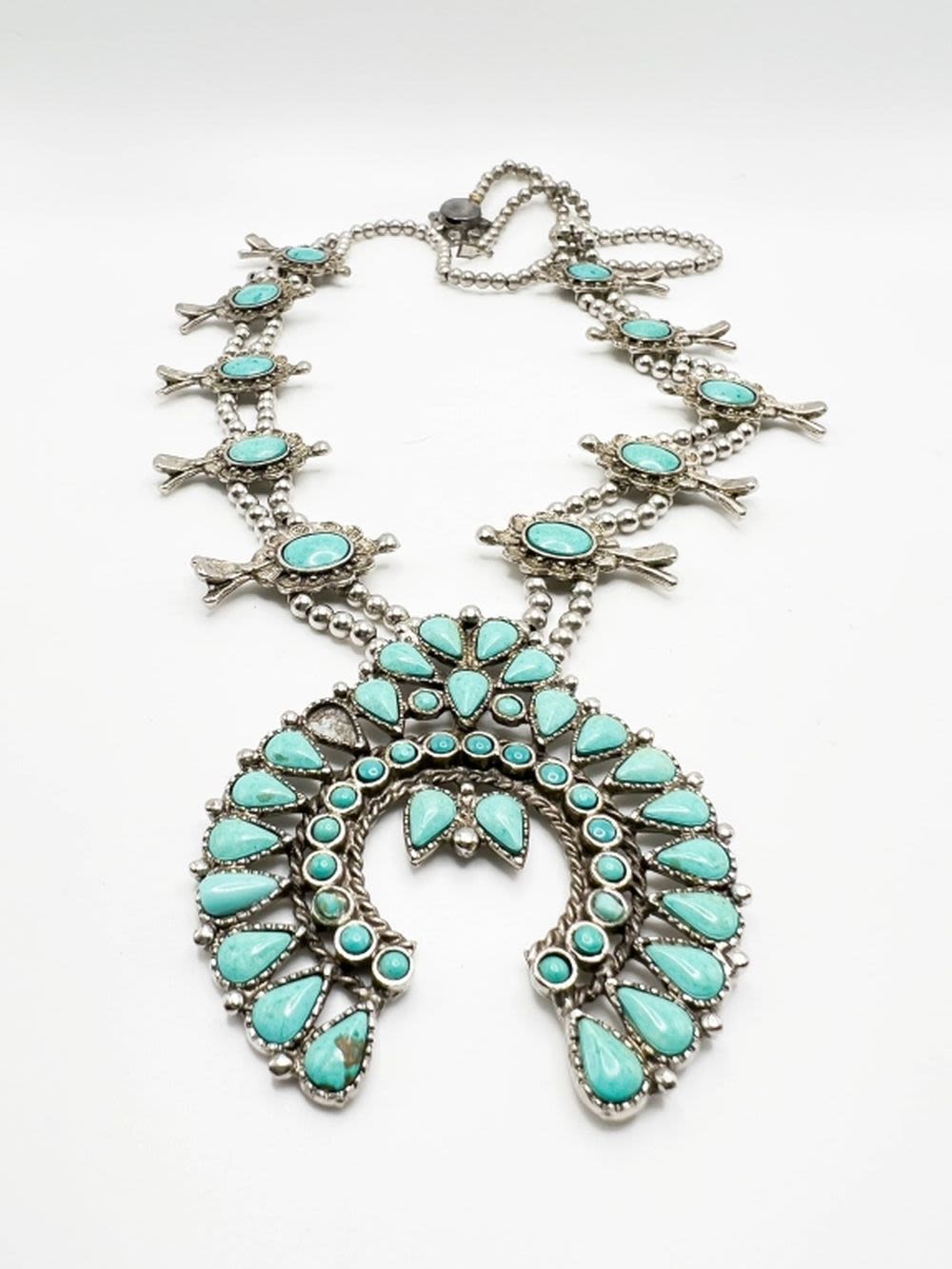 HUGE SQUASH BLOSSOM NECKLACE WITH HEAVY DETAIL, NICE !!!